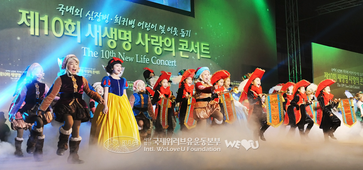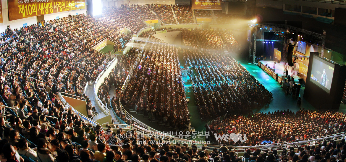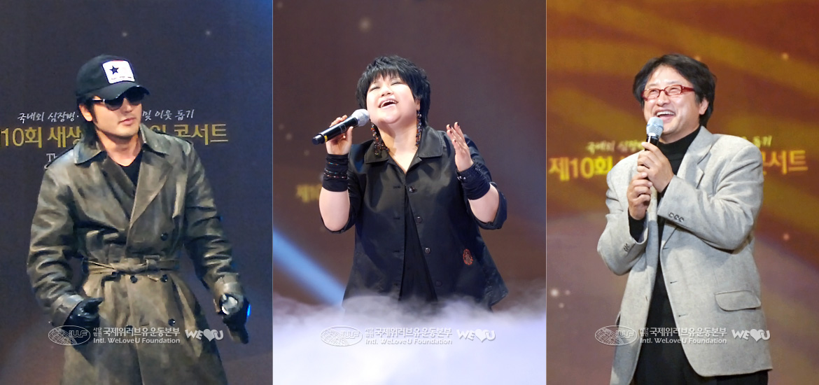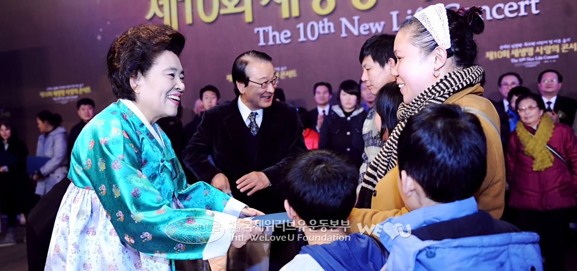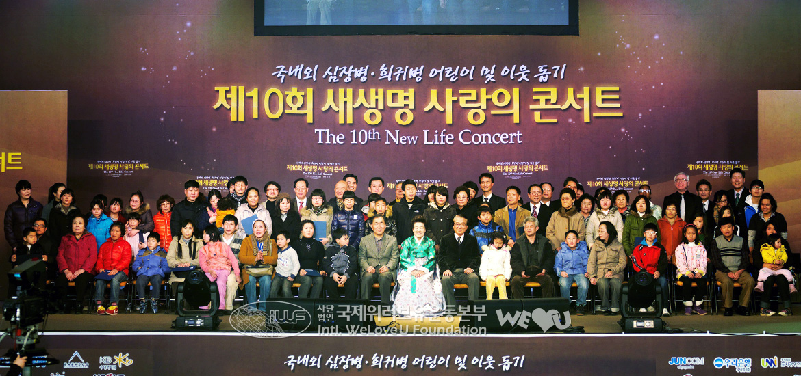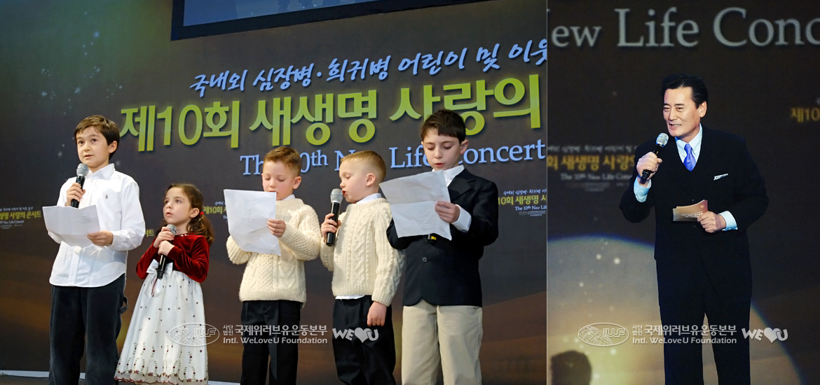 The New Life Concert, which had shown its first stage at the Jeongdong Event Hall in winter of 2,000, was held as the 10th concert at the Incheon Samsan World Gymnasium. With the purpose of helping children suffering from diseases and neighbors in need,the International We Love U Foundation hosted the 10th New Life concert. It was sponsored by the Ministry for Health, Welfare and Family Affairs, Incheon Metropolitan City, Seoul Metropolitan City, Bucheon Sejong General Hospital, Korea Youth Service Center, The Woman News, The Incheon Timesm, The Kyeongin Ilbo, The Monthly Chosun, The JoongAng Ilbo, and many other organizations who have good will. Around 8,000 people attended the concert:IWR Chairwoman Zahng Gil-jah, IWF Chief Diredtor Lee Kang-min and other board members, IWF Sponsor Chairman Lee Soon-jae, IWF Goodwill Ambassador Kim Seong-hwan and other IWF PR Ambassadors, special guests in all social standings, and IWF members with their family and neighbors.