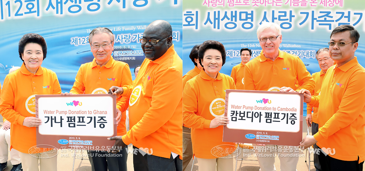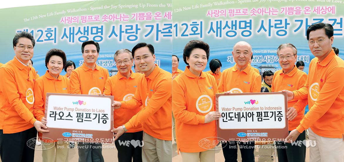 ON May 9,Sunday, “The 12th New Life Family Walkathon” was held in the Seoul Olympic Park. It was held by the Intl. WeLoveU Foundation and sponsored by Ministry of Health&Welfare, Sejong General Hospital, Korea Youth Services Center, Maeil Kyeongje TV and by Daejayon [The Internaional Association of University Students for Environmental Movement]. This event was held to provide clean water with water pumpS to five Asian and African countries which suffer from water shortages and the lack of clean drinking water. The aid project with the water pump began from the 10th New Life Family Walkathon in 2008 and has been actively progressing in many countries such as Ghana, Kenya, the Democratic Republic of the Congo, Cambodia, Laos and etc., and now it is providing high-quality water and substantial aid to tens of thousands of residents in those countries.