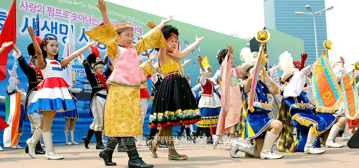 The attencants in orange-colored T-shirts filled the Peace Square. At about 10:30am,starting with a cute dance of the New Life Children’s Choir, the attendants were entertained by the singers like Kim Seong-hwan, Kim Bo-seong, Yun Tae-gyu, Lee Seung-hun, Baek Mi-hyeon,Kim Min-gyu, Kim Jae-hun and etc. As the last performance, the children of the embassy officials sang a song “Heal the world.” Through the song, they left a great impression and a strong message to heal the world in pain with our love and care coming from the bottom of our hearts. The video, which was played just before the celebration performances ended, helped the shortages and how much aid the WeLoveU Foundation is providing them.