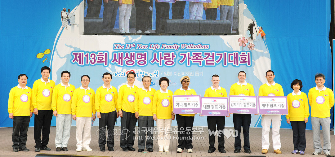 The Intl. WeLoveU Foundation held the “13th New Life Family Walkathon” under the auspices of the Ministry of Health and Welfare, city governments of Seoul and Suwon, and Sejong General Hospital in Bucheon. The New Life Family Walkathon that started to help children with heart disease and intractable diseases, and of parentless or extremely poor families, and foreign workers who injured has met its 13th anniversary. This year, the foundation donated 12 million won [10,000 USD] for 24 low-income households in Suwon including senior citizens living alone and parentless families, and 3.4 million yen [42,000 USD] for the relief effort for the Japanese earthquake victims. It also donated facilities to develop ground water and eight water pumps to four countries suffering from water shortage—Cambodia, Ghana, Kenya and Nepal (two water pumps each).