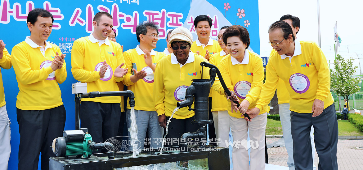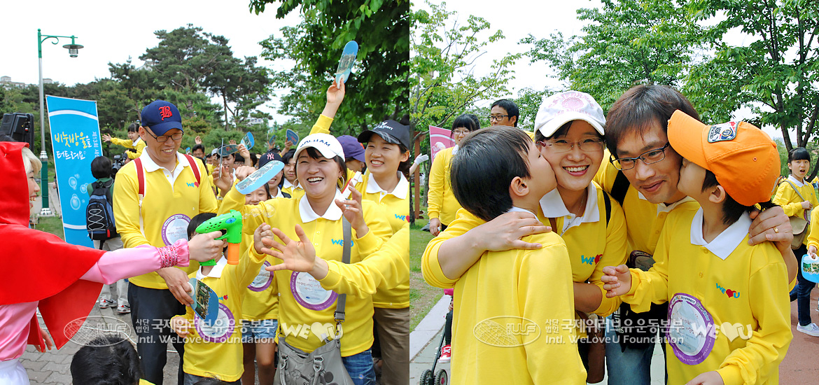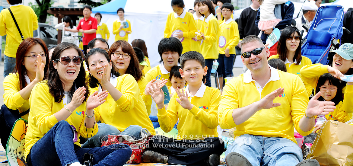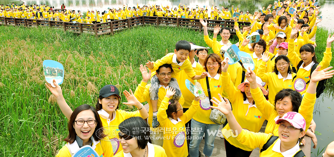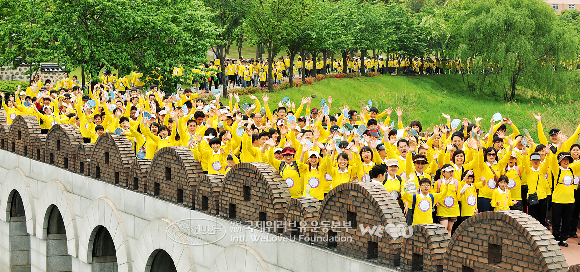 On May 22, yellow forsythias were in full bloom in the Manseok Park, Suwon. They were the members of the Intl. WeLoveU Foundation who gathered to give hope to the countries having a water shortage, victims suffering from natural disasters, and neighbors going through hard times of life.