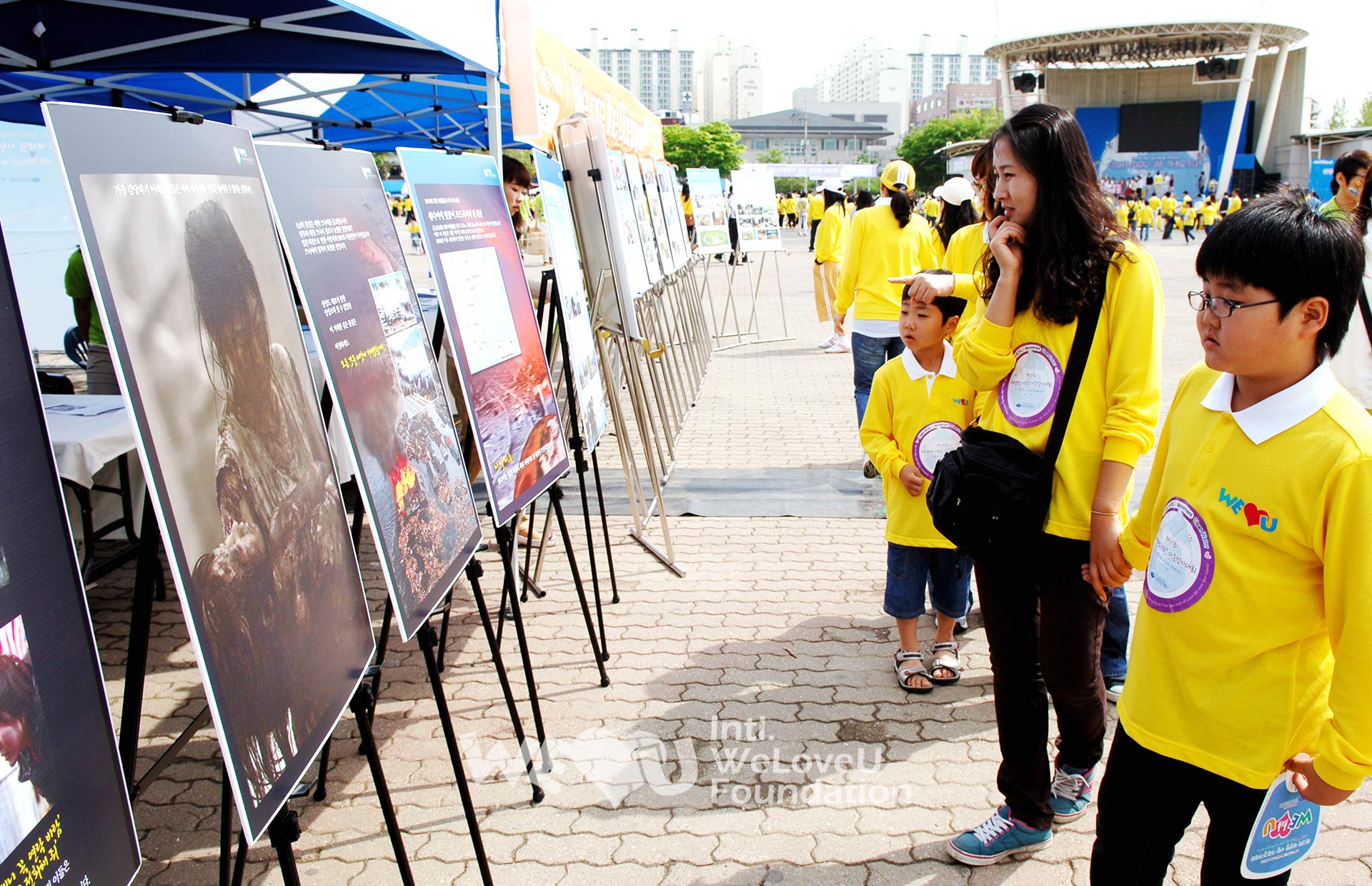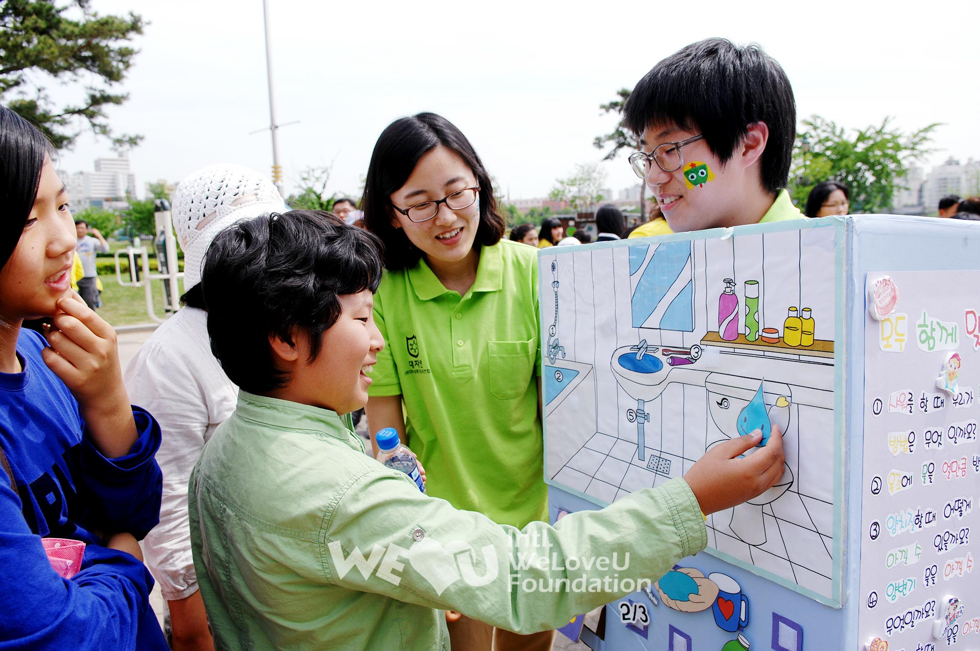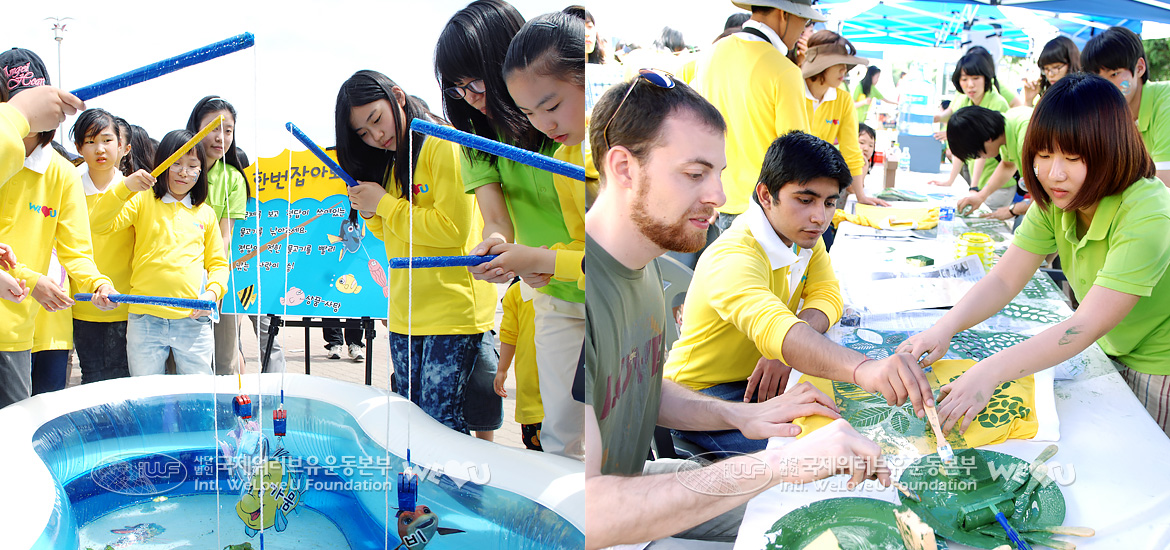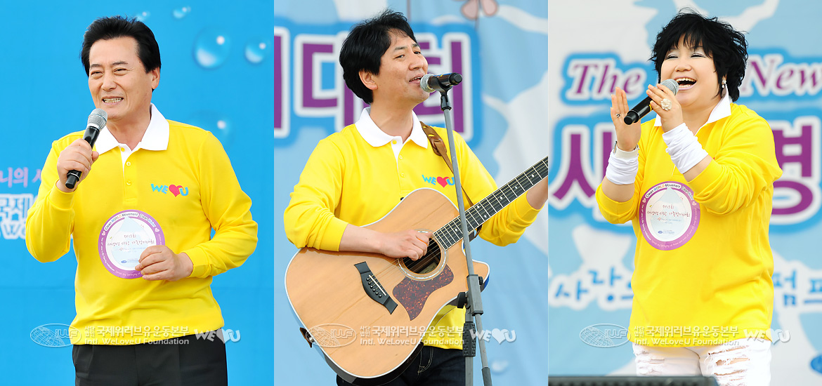 On May 22, yellow forsythias were in full bloom in the Manseok Park, Suwon. They were the members of the Intl. WeLoveU Foundation who gathered to give hope to the countries having a water shortage, victims suffering from natural disasters, and neighbors going through hard times of life.
