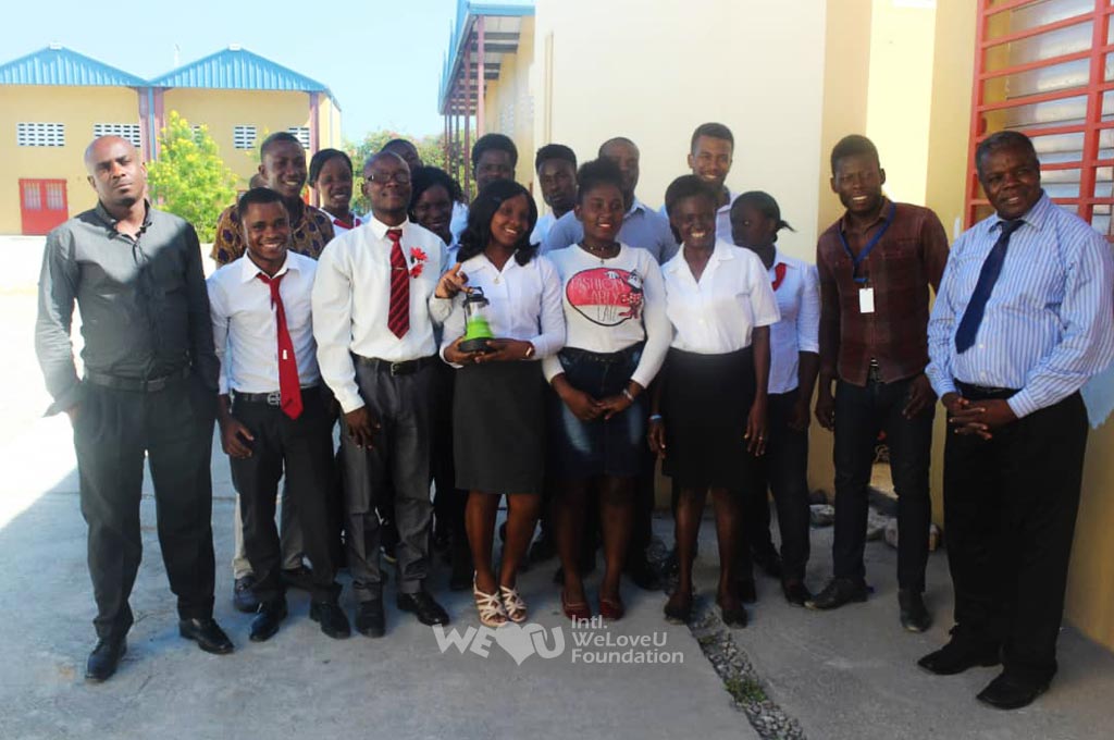 On Oct 28, the members from the WeLoveU branch in Haiti visited Wharf Jeremie Vocational and Technical Training Center in Port-au-Prince to meet with the 100 students. Due to a lack of electricity supply, the students had difficulty studying after sunset; on May 31, the WeLoveU branch donated 3,000 solar-powered lanterns as part of Bright Haiti Initiative, five months before.