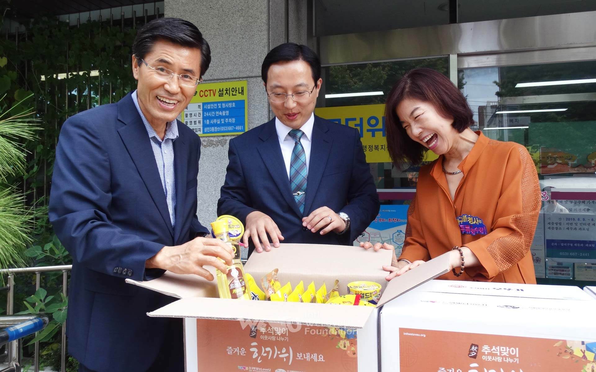 Officials from municipalities said in unison that they would deliver the gifts to those who surely needed them. Gwon Gu-seong, the Chief of Chilseong-dong, Bukgu, Daegu, said, “Thank you so much for your efforts. Thanks to your help, the foundation of the region has been laid.” The members replied, “While helping others, we ourselves were happy. Not only the neighbors who received the gifts were happy, but we also had a very good time.”