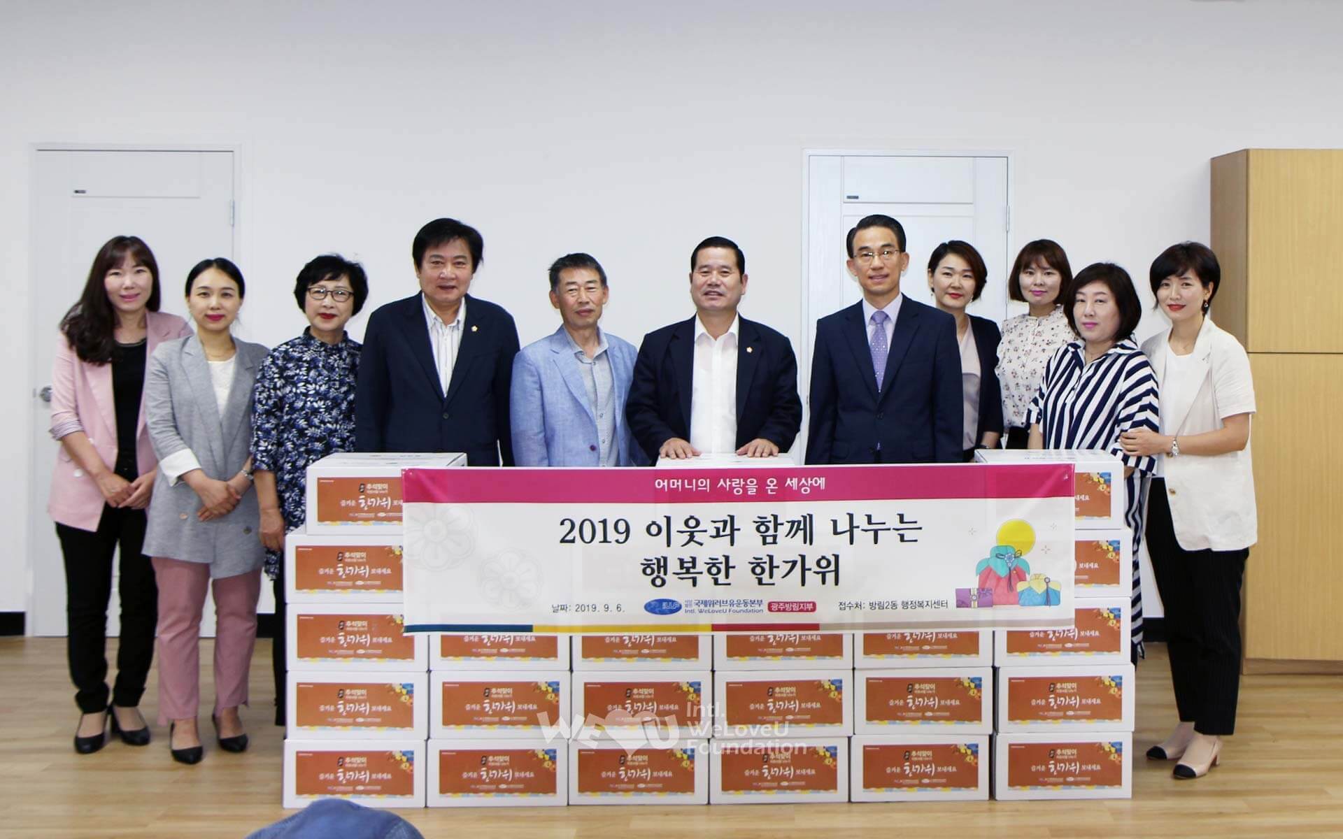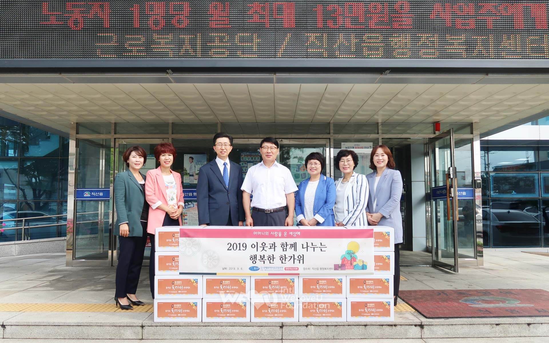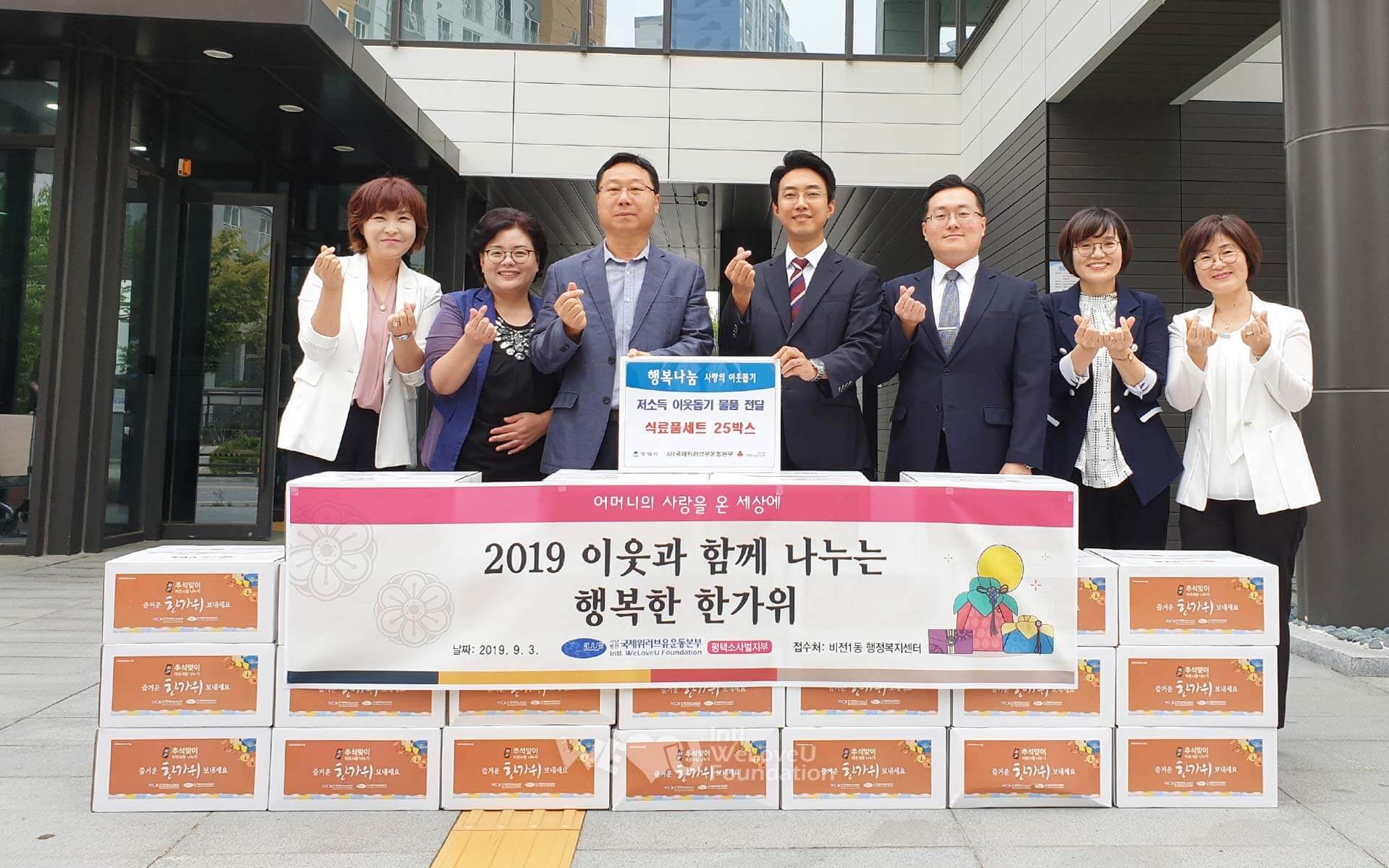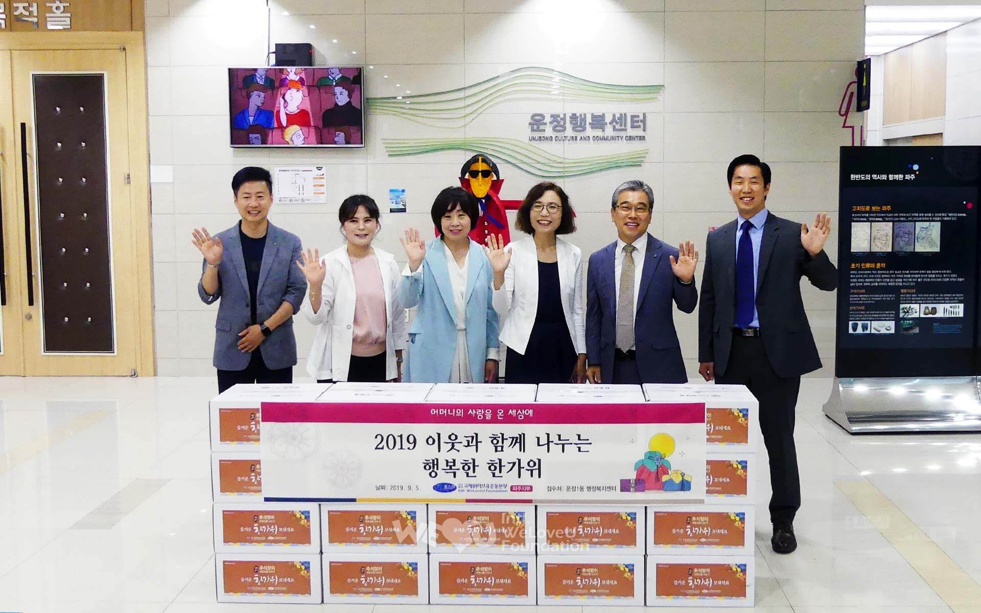 In 2019, too, WeLoveU shared food and happiness in celebration of Chuseok with neighbors. From September 2 to 10, WeLoveU supported underprivileged households in cooperation with government offices in 50 regions of Korea, including Gyeonggi, Gangwon, Chungcheong, Jeolla, Gyeongsang, and Jeju, and Seoul. Through a donation ceremony held in community service centers in municipalities and district offices, WeLoveU delivered packages of food worth about 50 million won [50,000 USD] to 1,300 households.