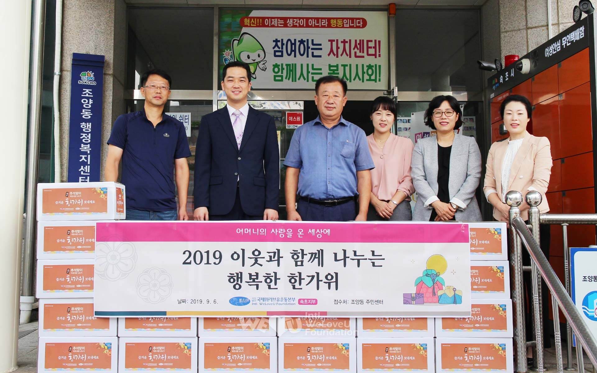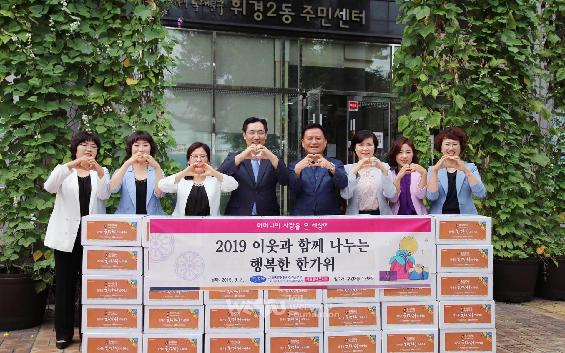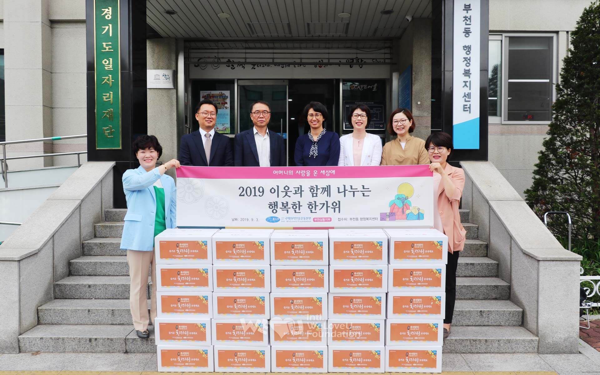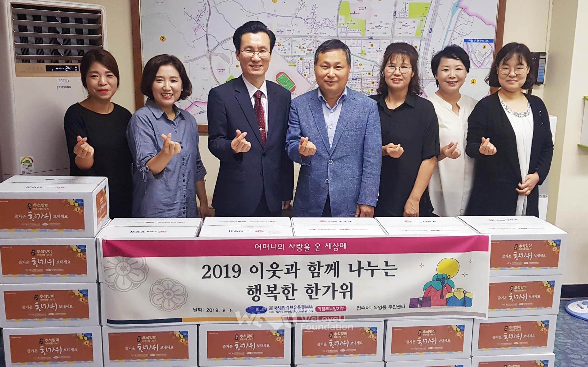 In 2019, too, WeLoveU shared food and happiness in celebration of Chuseok with neighbors. From September 2 to 10, WeLoveU supported underprivileged households in cooperation with government offices in 50 regions of Korea, including Gyeonggi, Gangwon, Chungcheong, Jeolla, Gyeongsang, and Jeju, and Seoul. Through a donation ceremony held in community service centers in municipalities and district offices, WeLoveU delivered packages of food worth about 50 million won [50,000 USD] to 1,300 households.