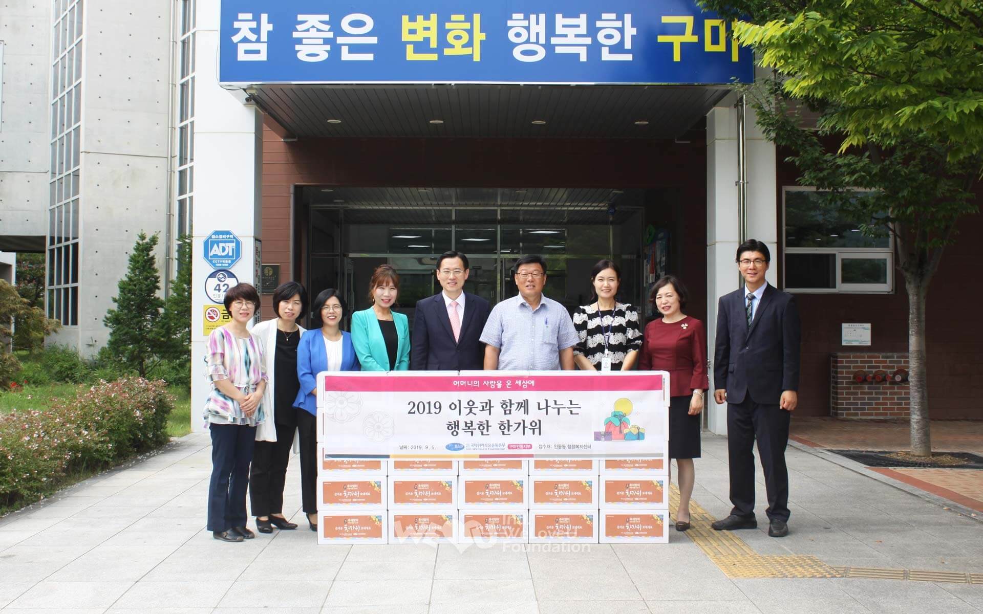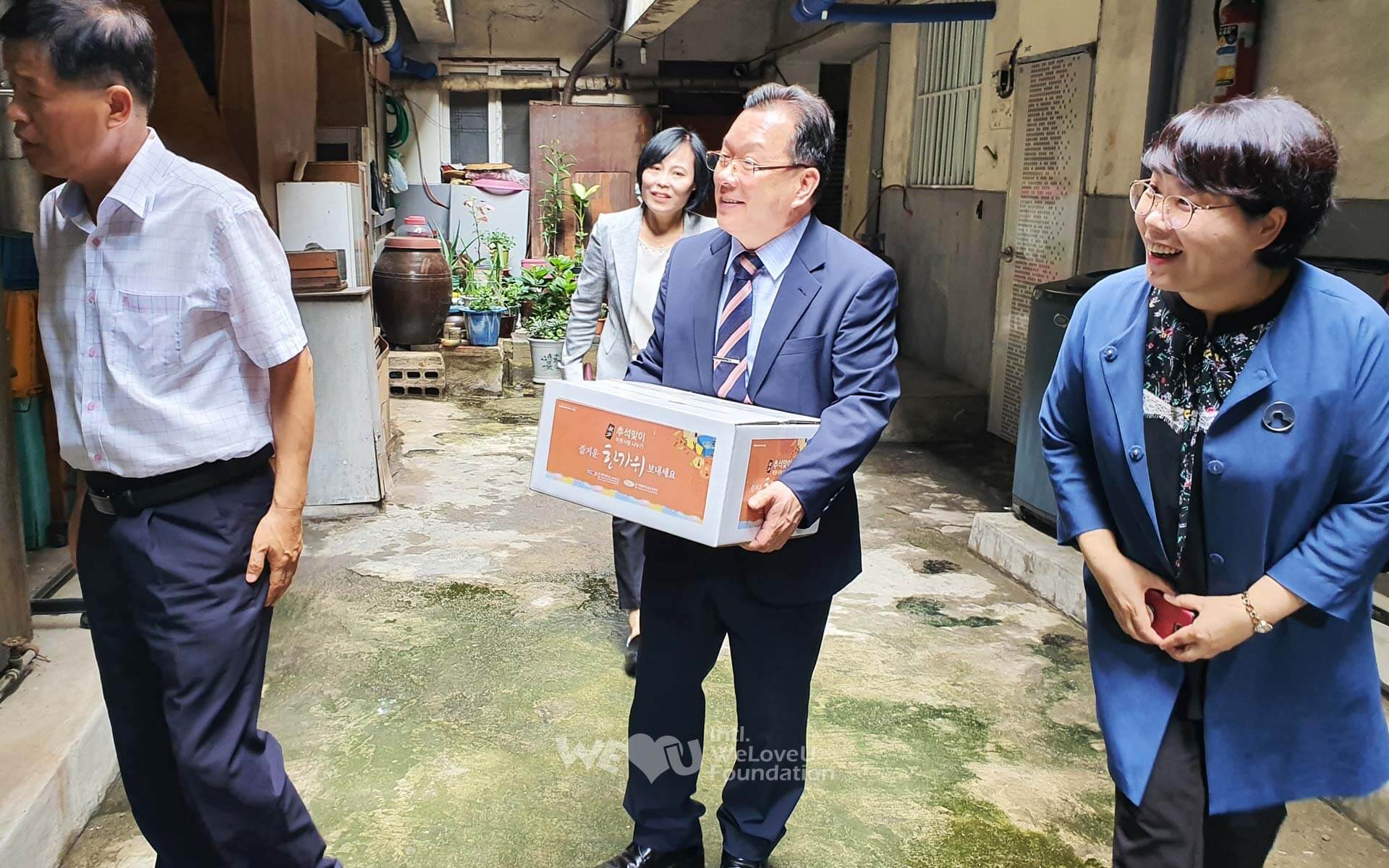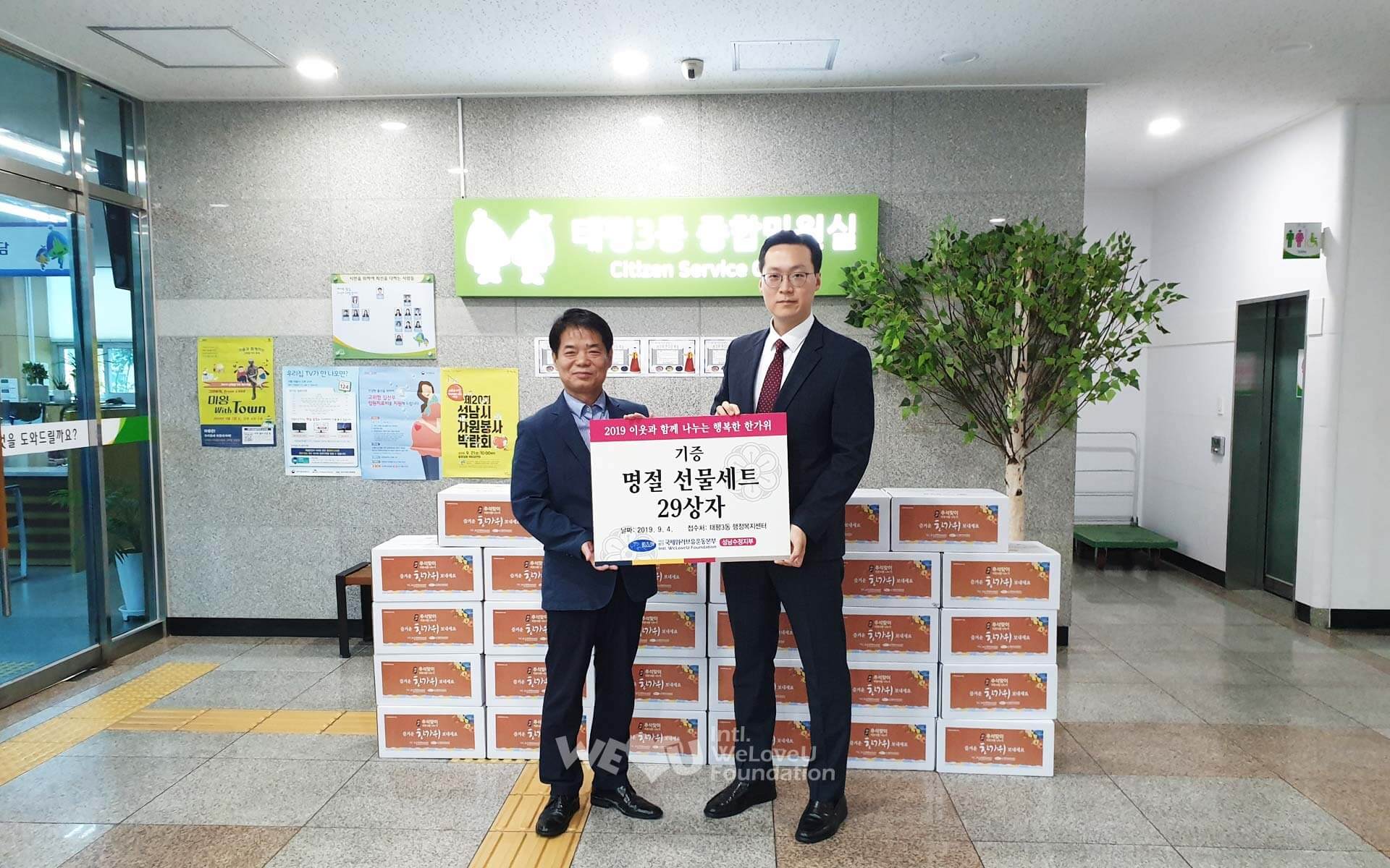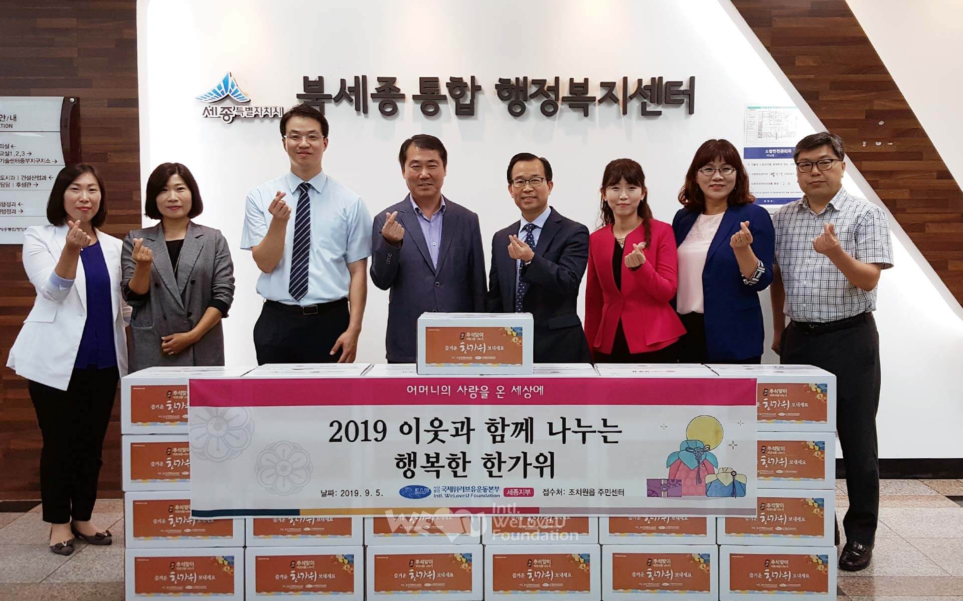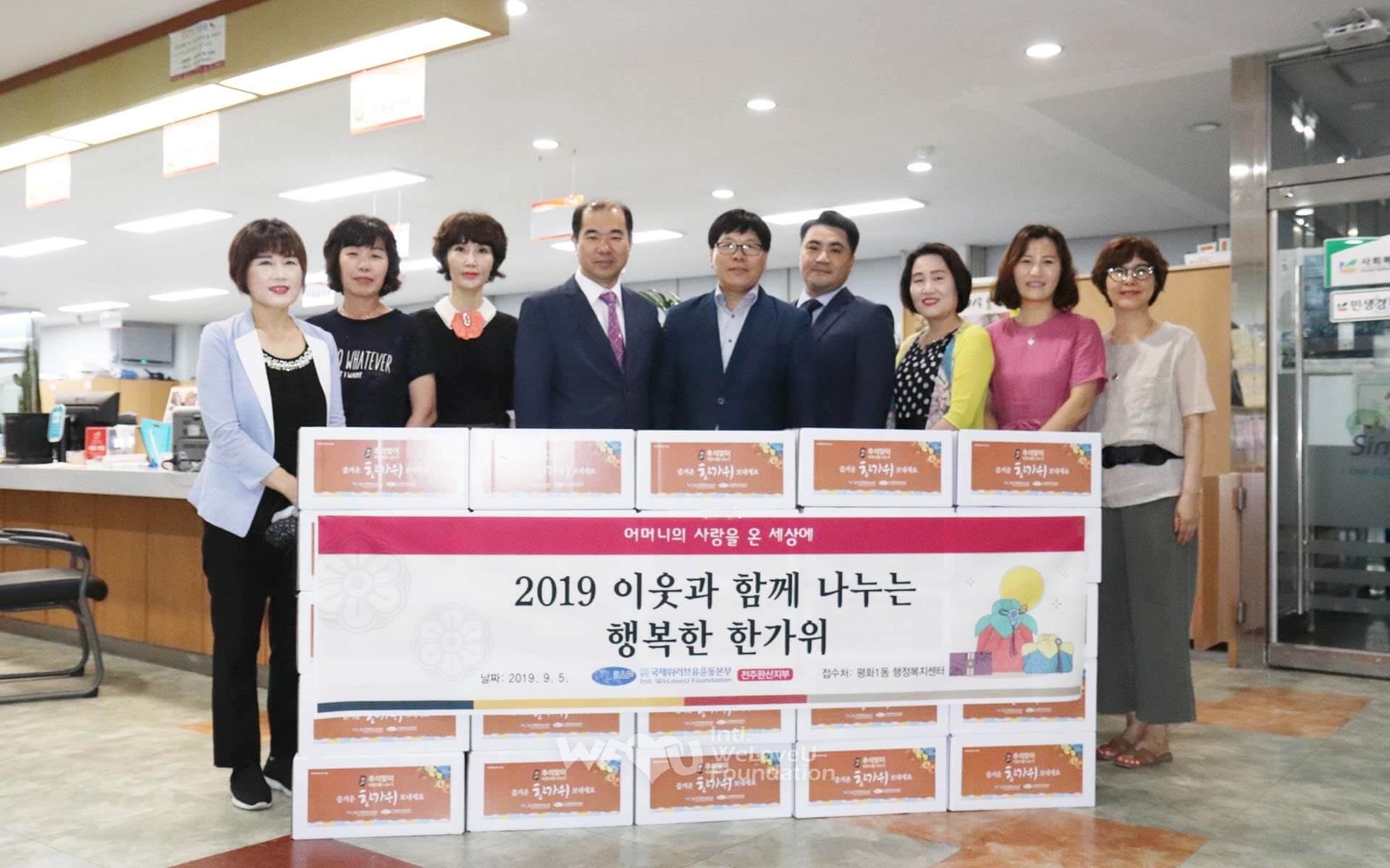 In 2019, too, WeLoveU shared food and happiness in celebration of Chuseok with neighbors. From September 2 to 10, WeLoveU supported underprivileged households in cooperation with government offices in 50 regions of Korea, including Gyeonggi, Gangwon, Chungcheong, Jeolla, Gyeongsang, and Jeju, and Seoul. Through a donation ceremony held in community service centers in municipalities and district offices, WeLoveU delivered packages of food worth about 50 million won [50,000 USD] to 1,300 households.