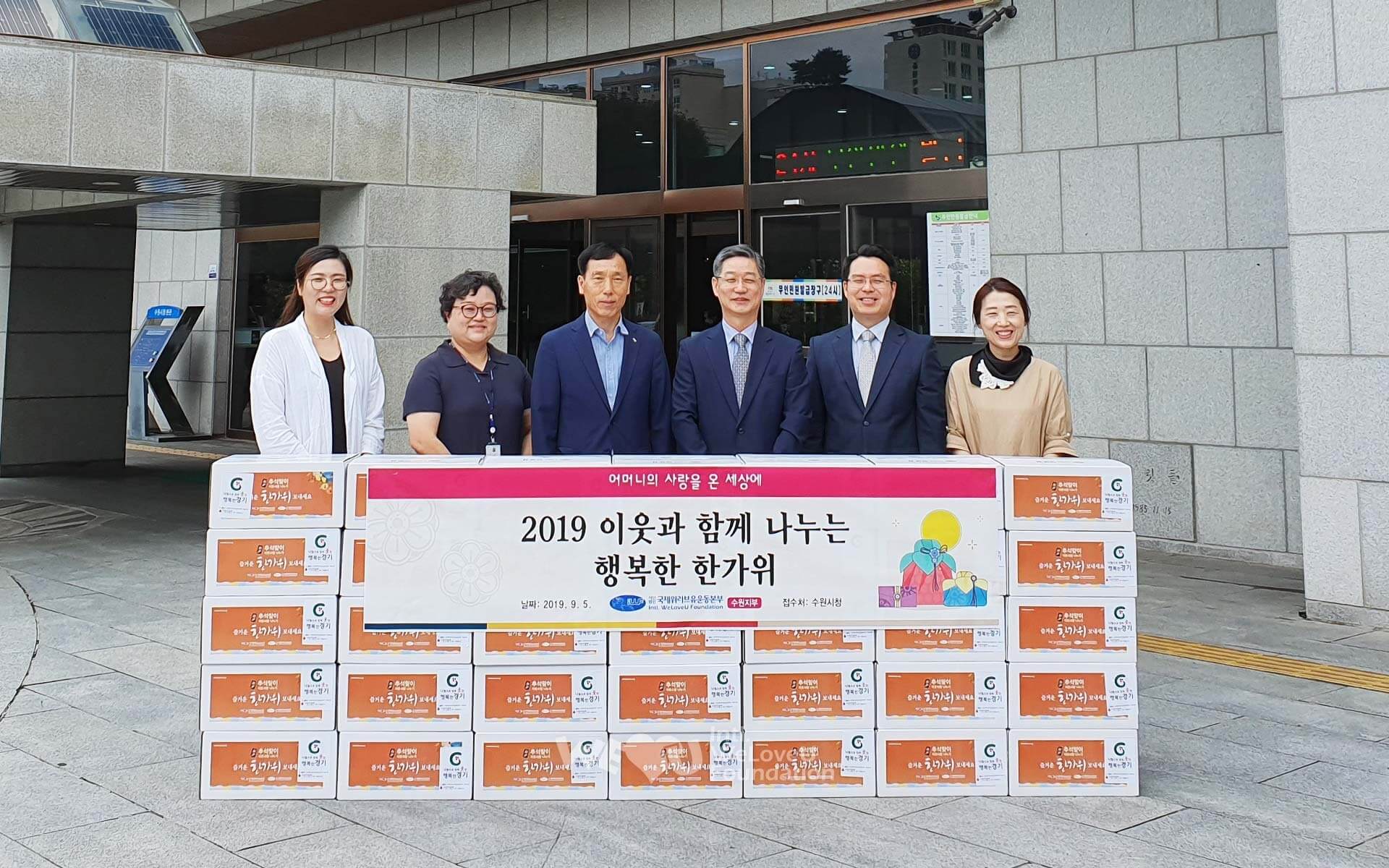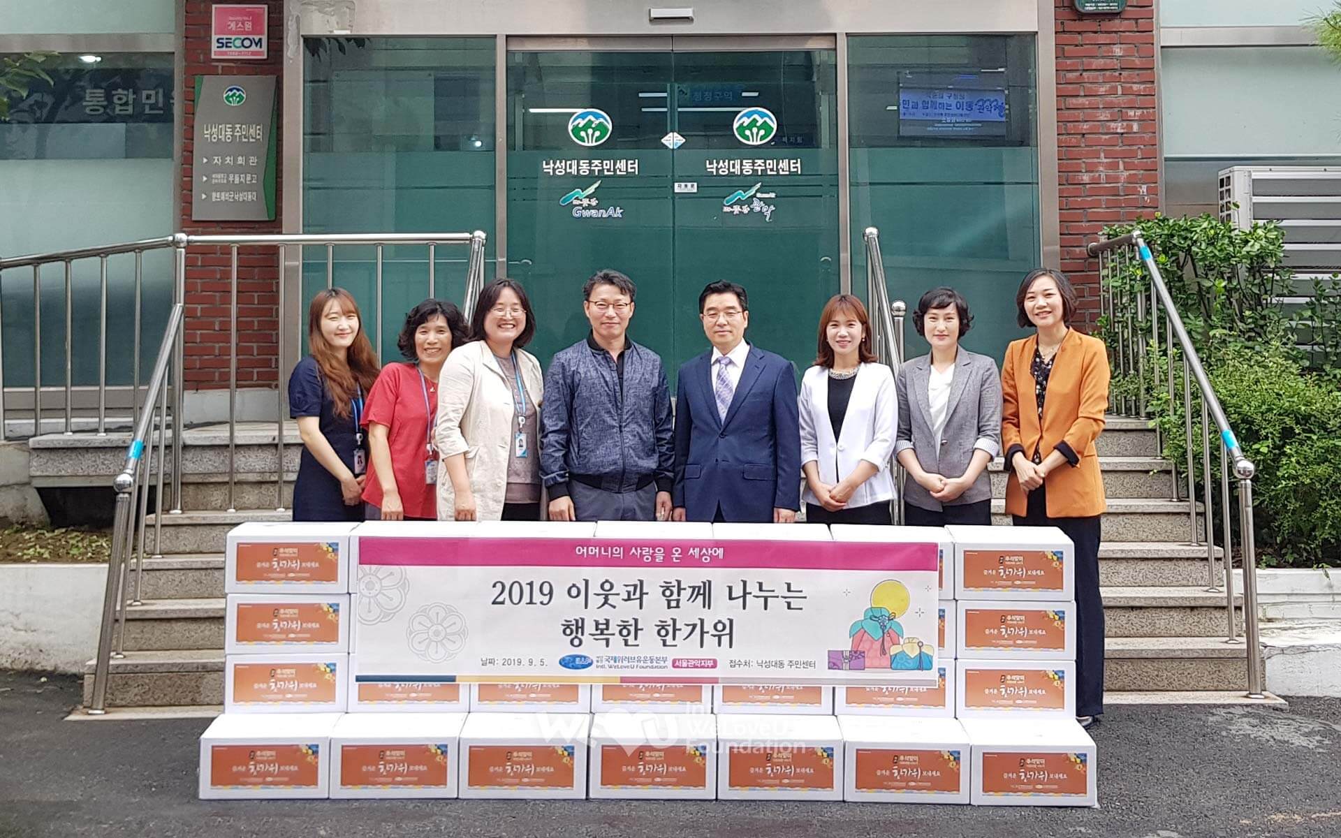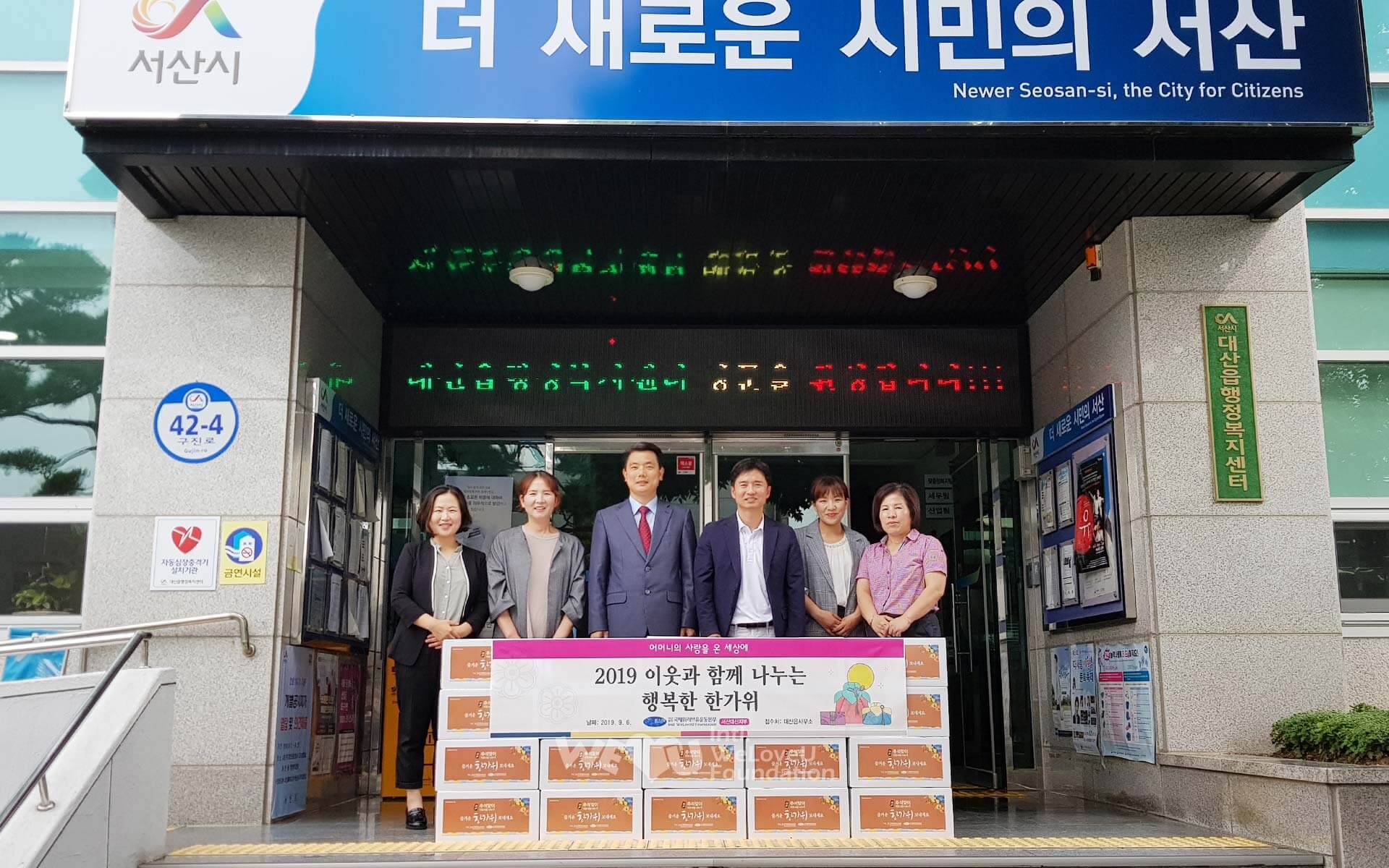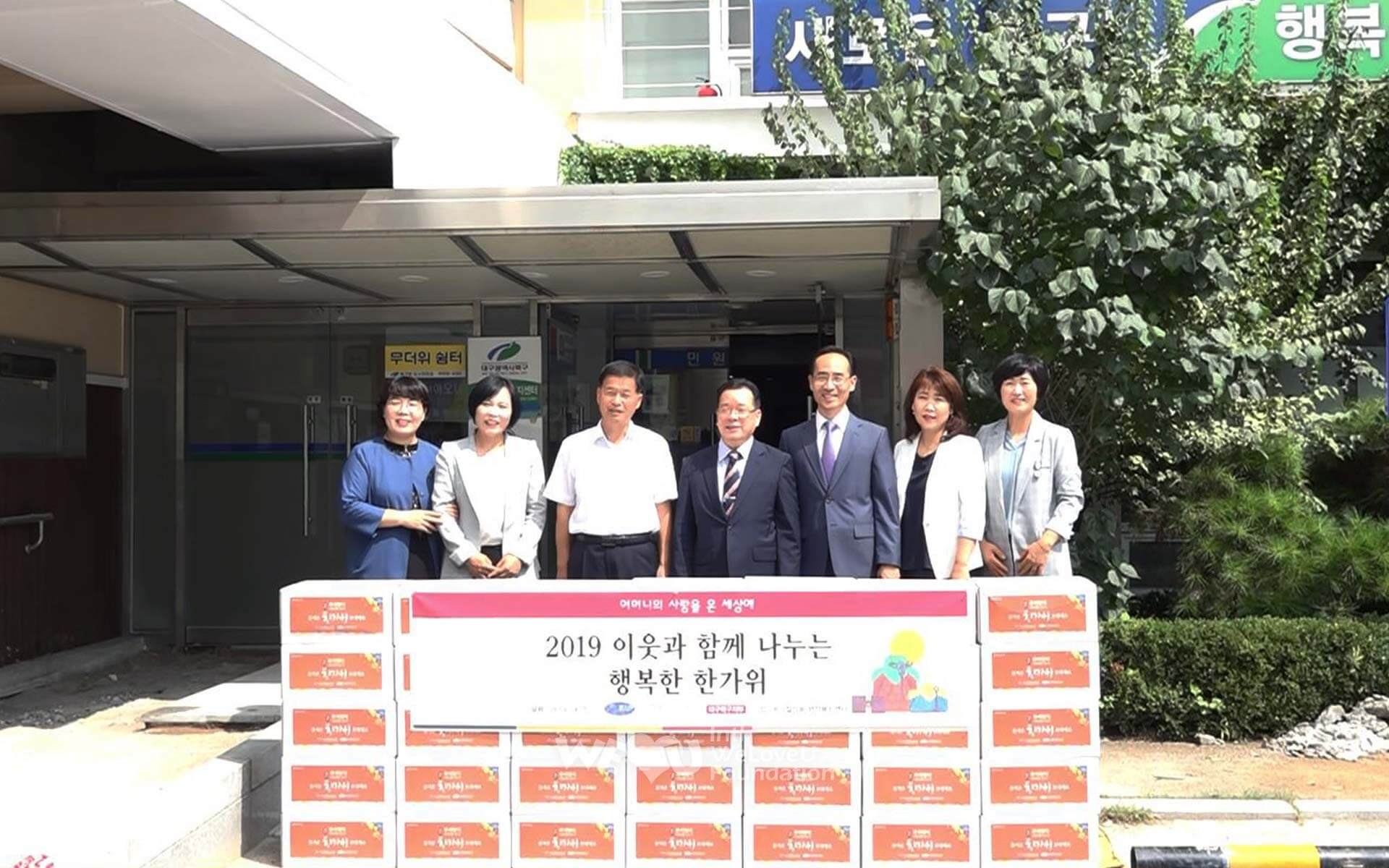 In 2019, too, WeLoveU shared food and happiness in celebration of Chuseok with neighbors. From September 2 to 10, WeLoveU supported underprivileged households in cooperation with government offices in 50 regions of Korea, including Gyeonggi, Gangwon, Chungcheong, Jeolla, Gyeongsang, and Jeju, and Seoul. Through a donation ceremony held in community service centers in municipalities and district offices, WeLoveU delivered packages of food worth about 50 million won [50,000 USD] to 1,300 households.