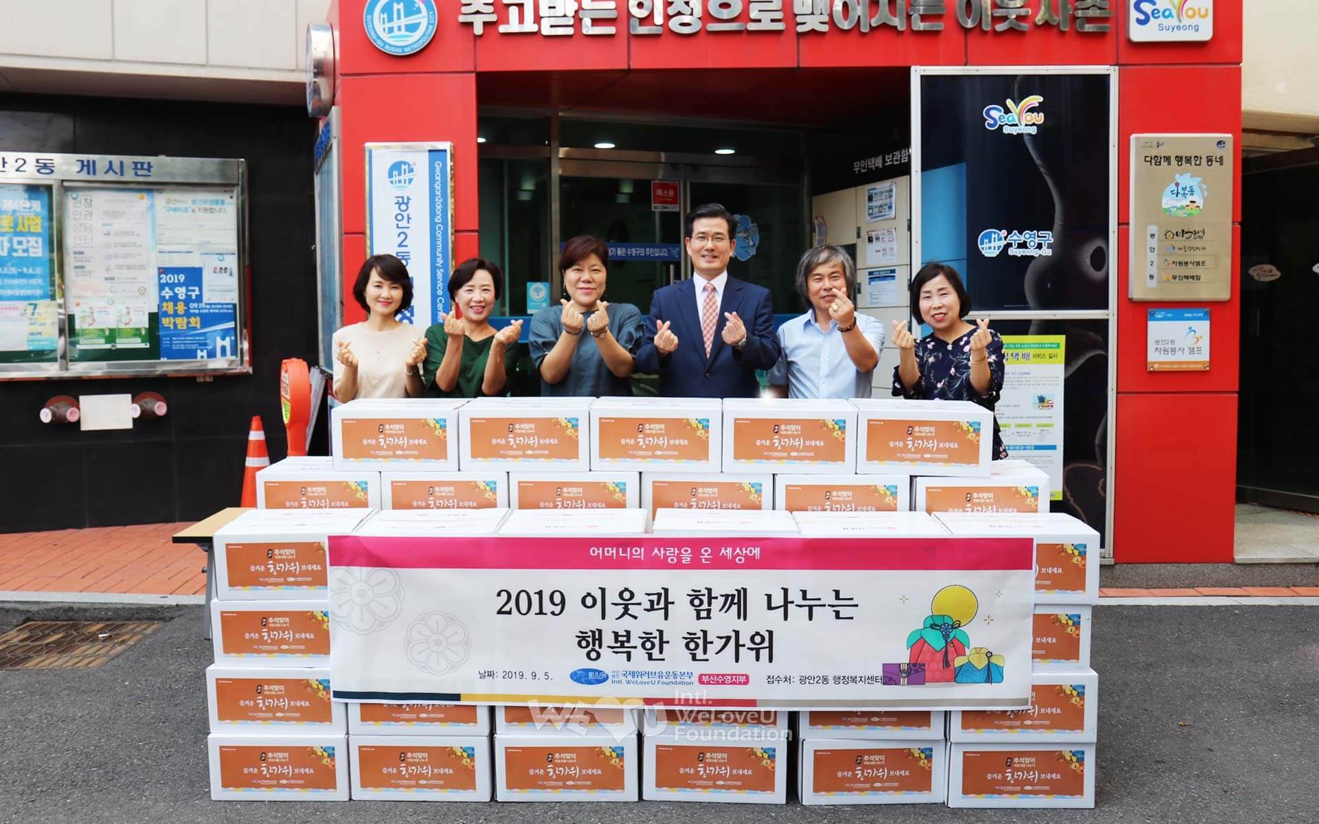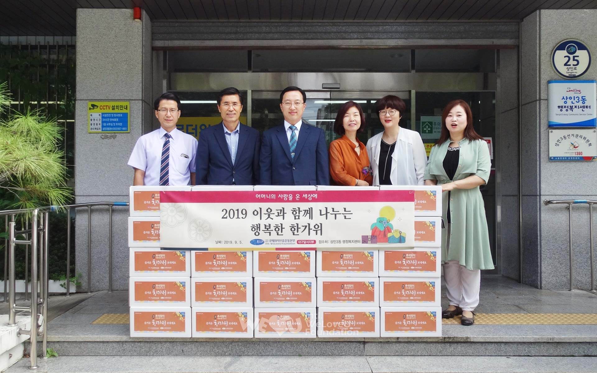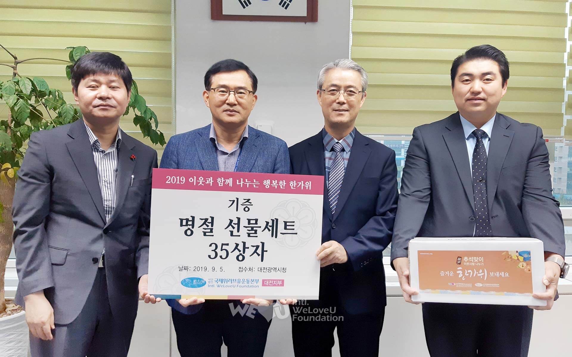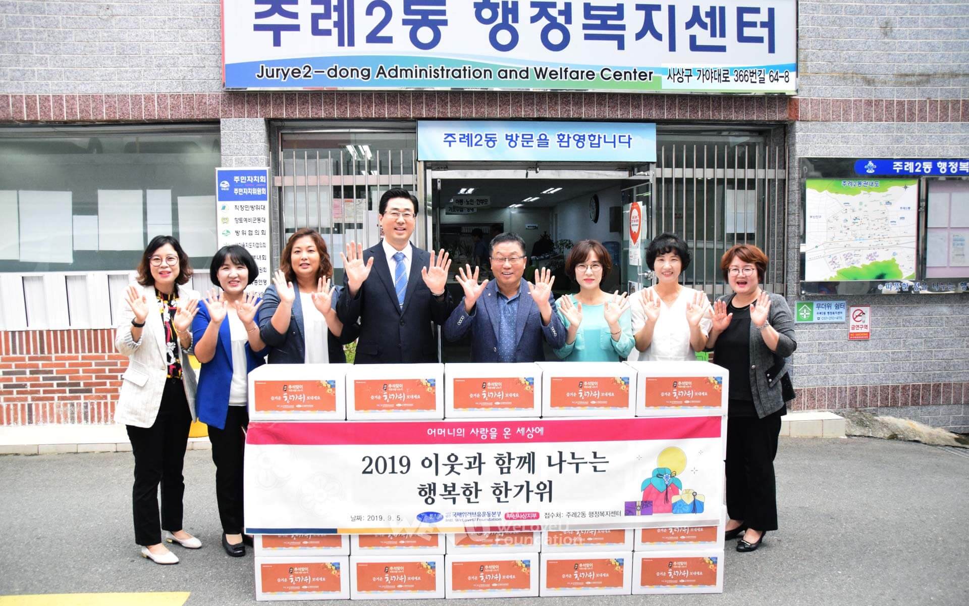In 2019, too, WeLoveU shared food and happiness in celebration of Chuseok with neighbors. From September 2 to 10, WeLoveU supported underprivileged households in cooperation with government offices in 50 regions of Korea, including Gyeonggi, Gangwon, Chungcheong, Jeolla, Gyeongsang, and Jeju, and Seoul. Through a donation ceremony held in community service centers in municipalities and district offices, WeLoveU delivered packages of food worth about 50 million won [50,000 USD] to 1,300 households.