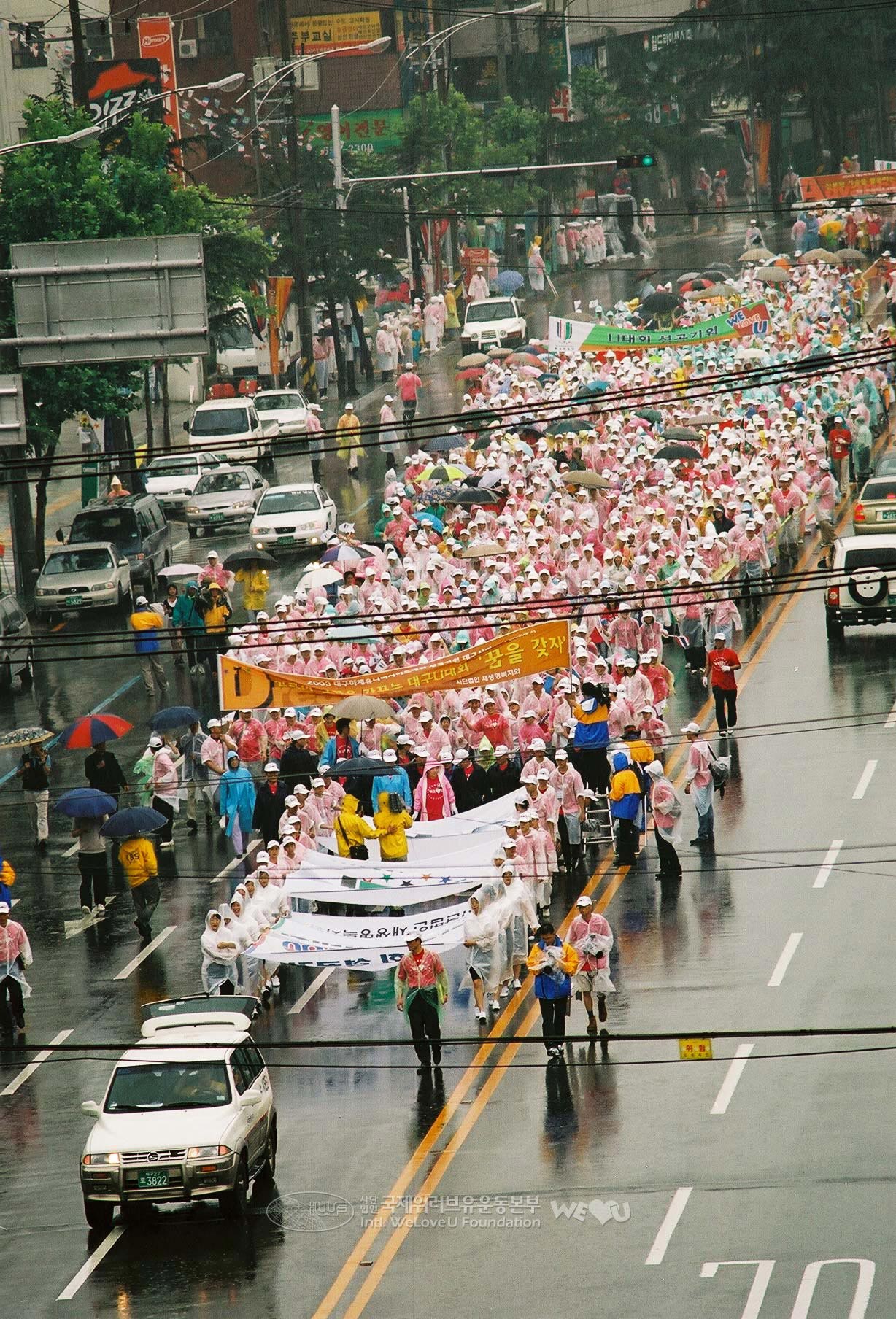 Wishing for the success of the Daegu Summer Universiade that was planned to be held in August in Deagu, the walkathon played an important role to increase citizens’ interest for the Summer Universiade by walking a total of 3 km from Daegu Technical College to Kolon Outdoor Auditorium located in Duryu Park, including 1 km walk through the center of Daegu city.