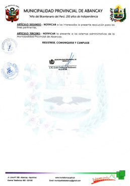 Article 3 – Notify this to the administrative systems of the Provincial Municipality of Abancay City.