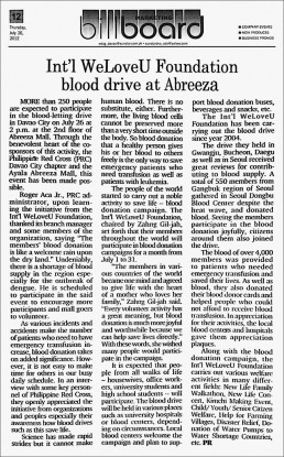 Int’l WeLoveU Foundation blood drive at Abreeza