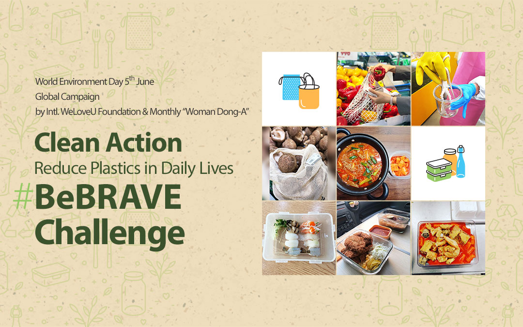 It is about the “BeBRAVE Challenge.” It is a global environmental campaign carried out by the Intl. WeLoveU Foundation and Monthly “Woman Dong-A.” Following the Recycling Challenge carried out last year, this was the second challenge held from May 25 to June 17 to celebrate World Environment Day on June 5. The goal is for people around the world to value the environment and participate in revitalizing the environment in their daily lives. The “BeBRAVE Challenge” is not some grand environmental movement, but anyone brave can do it anywhere. If you have braveness and show it, you can get what you need.