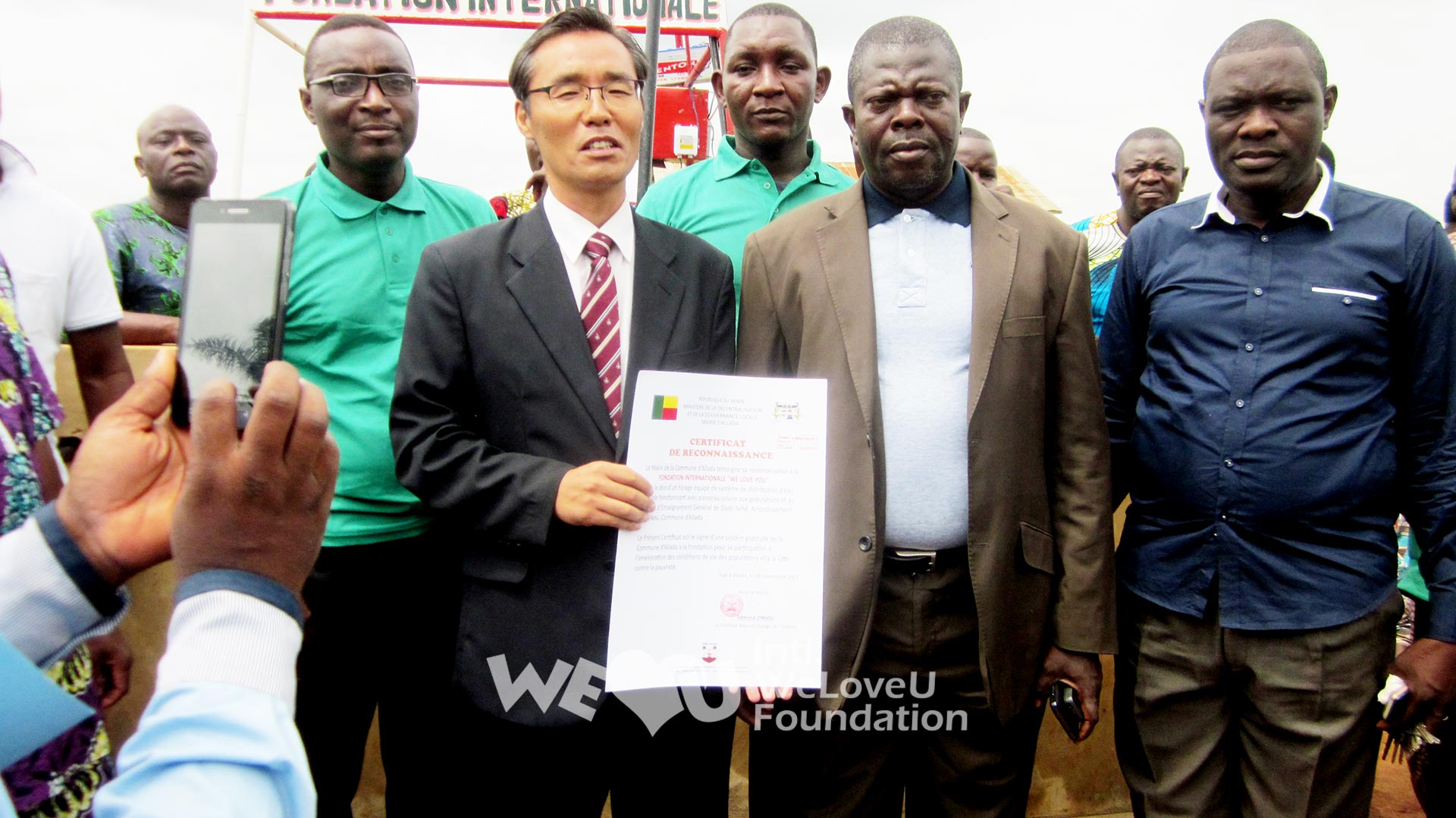 “We need much help in our communities. We’d like to meet the Intl. WeLoveU Foundation again,” said Member of National Assembly Zinsou. He expressed his thanks for the Foundation’s hard work and presented the certificate of appreciation in the name of Mayor of Allada. When the Foundation members said, “Anybody can use the water pump for free!” the residents shouted for joy. They showed their gratitude, presenting pineapples to the members.