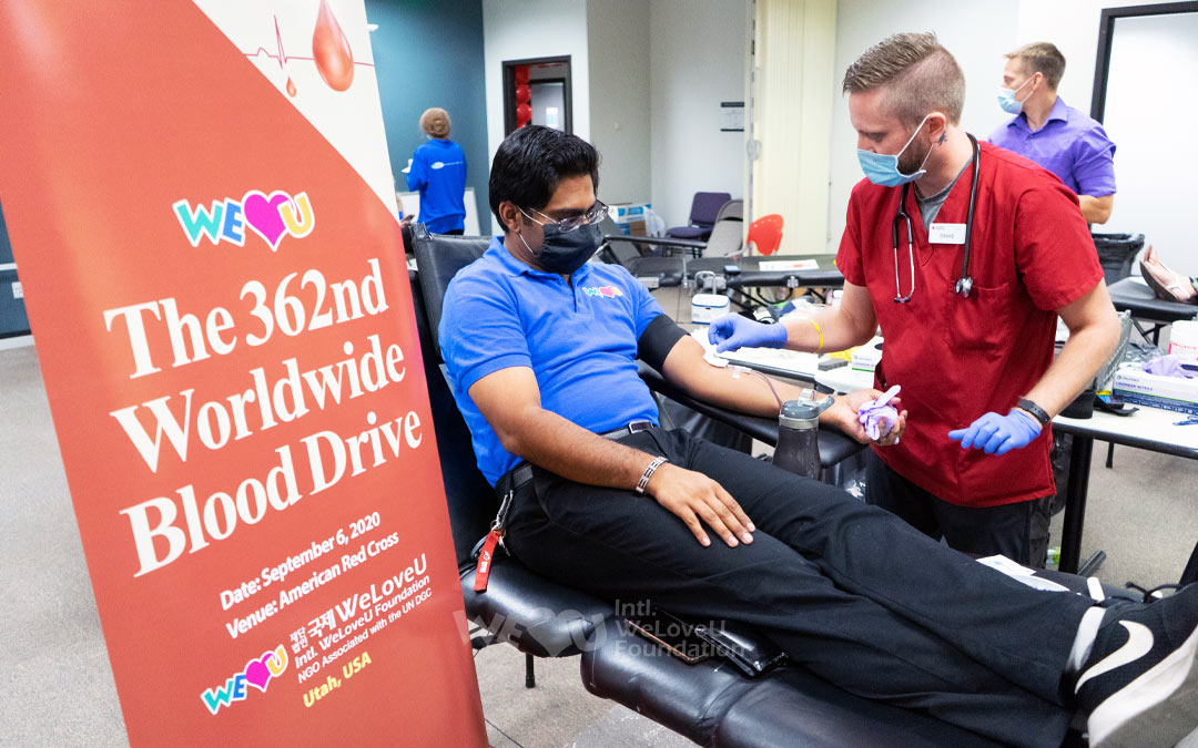 Amid the pandemic, many people require blood transfusions, but the number of blood donors has dropped sharply due to fear of the virus. Although blood shortage has become serious, the government of each country cannot help but regretfully accept their situation. The members of the Intl. WeLoveU Foundation (hereinafter referred to as the WeLoveU ) in the U.S., Brazil, and New Zealand rolled up their sleeves, hoping that others too would voluntarily donate blood. In the second half of 2020, they continued the noble act of sharing their lives by carrying out blood drives while adhering to COVID-19 preventative measures. They said people should continue to donate blood even in a small scale in order to save people in danger.