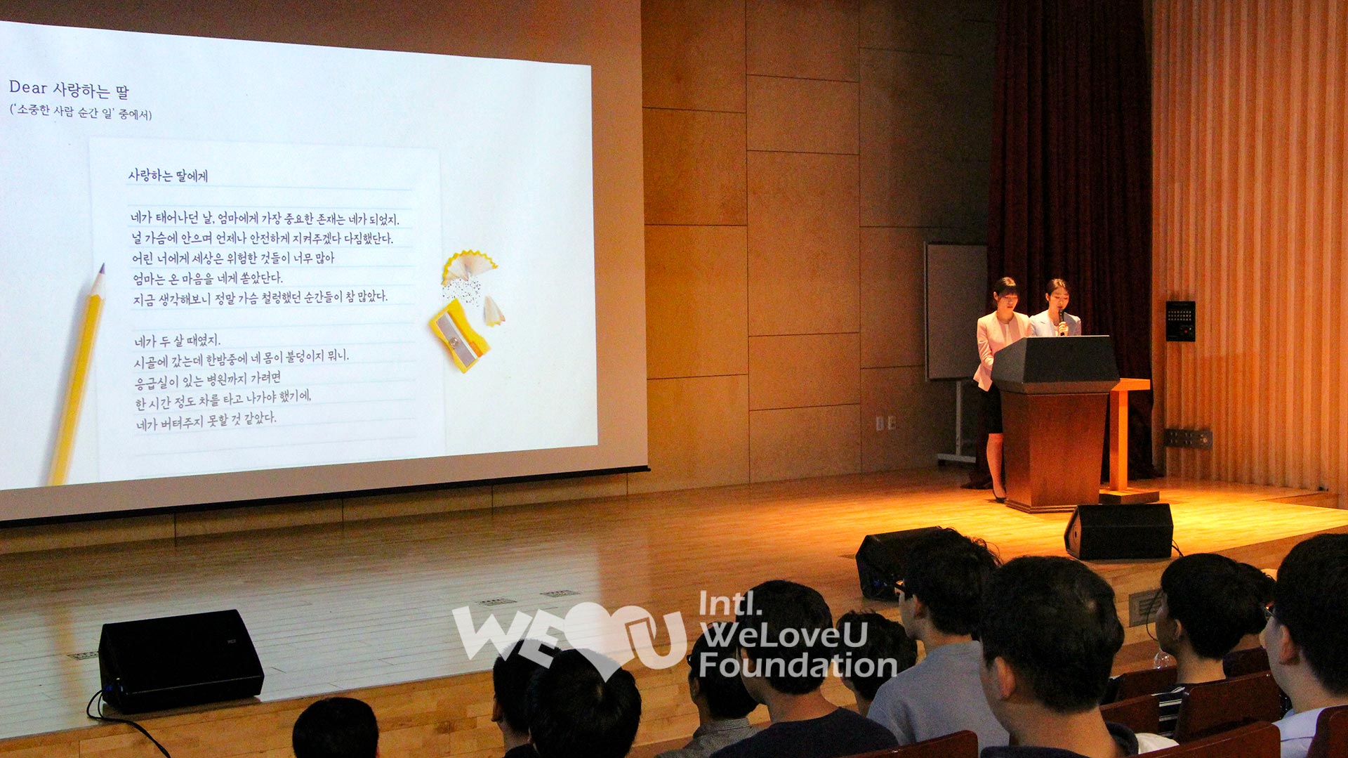 According to the data of the National Police Agency in May 2018, 956 crimes committed against family members in 2012 increased to 1,962 cases last year. Over the past five years, the number of crimes against heaven has doubled. At this, experts say that family breakdown is one of the major reasons. In order to help youth realize the importance of family and build right character and personality, the Intl. WeLoveU Foundation has prepared character education for youth under the subject of ‘filial piety.’