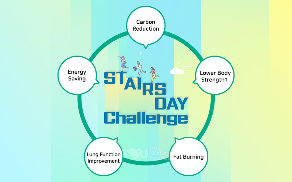 Anyone can participate in the Stairs Day Challenge anytime, anywhere, without any cost or special equipment. It helps reduce carbon by saving energy for operating elevators and escalators, and you can burn 0.15 calories when you climb a stair, which helps you maintain your good health. The more people use stairs, the more impact this challenge makes.