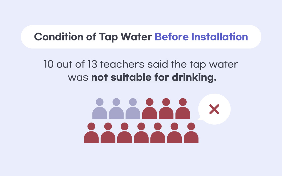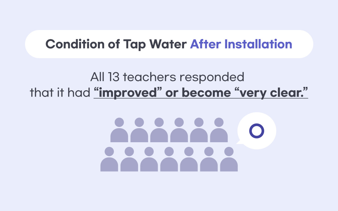 “Thank you for installing a water purification system so that we can drink clean water. Thanks to it, students and teachers can drink safe water and prevent waterborne diseases.”