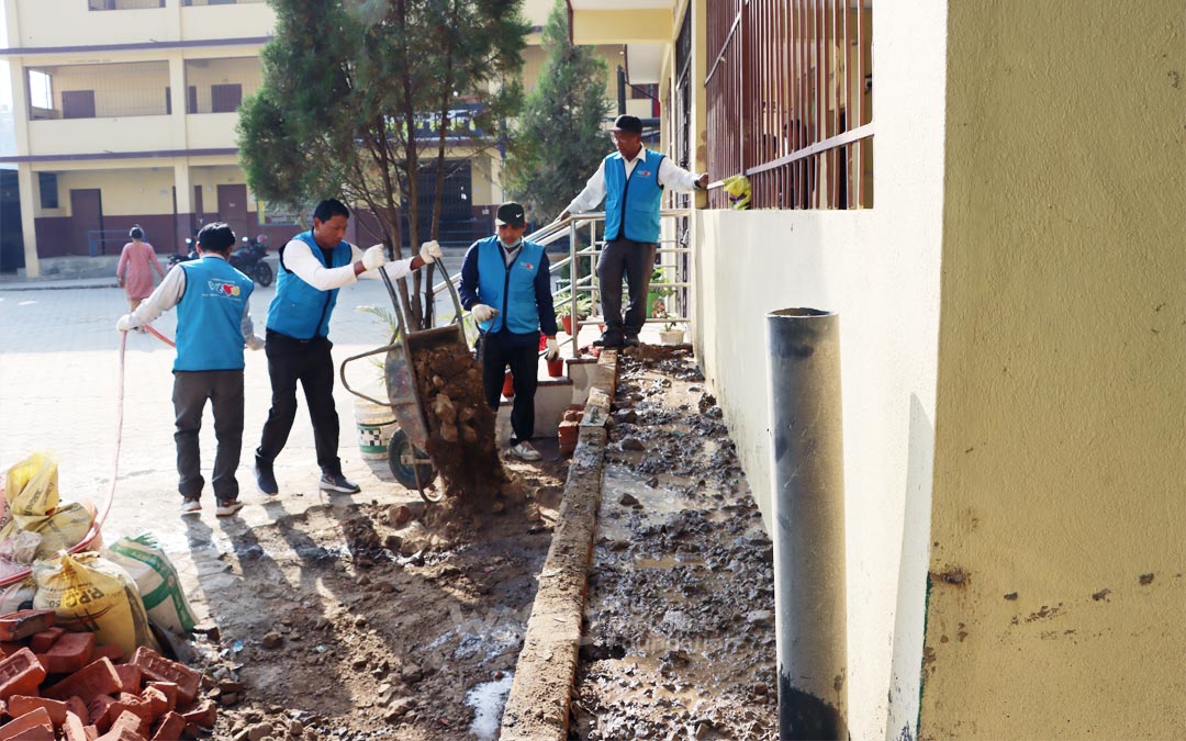 In September of last year, heavy torrential rain swept through the Mahalaxmi area of Lalitpur in Bagmati Province, Nepal. Among the many places affected was Shree Gamvir Samudra Setu Secondary School, which has more than 1,500 students ranging from kindergarten to high school. The floodwaters rose to the knees of adults, damaging most of the first floor.