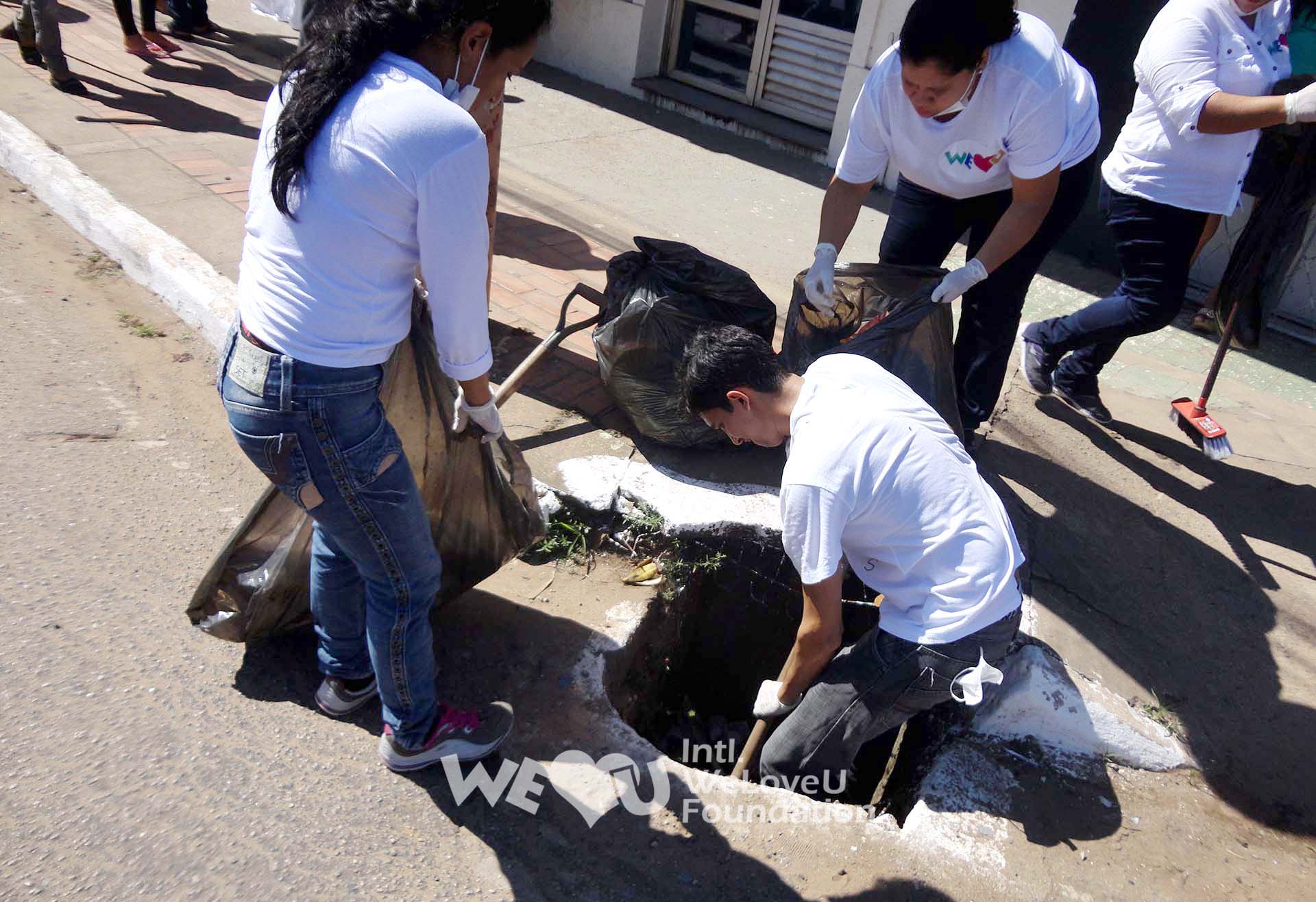 Thirty-three people including the Intl. WeLoveU Foundation members and the residents participated in the cleanup in Aviário, Rio Branco. They swept trash in the street corners with brooms and cleaned up garbage accumulated in the sewage. Passersby paid attention to the cleanup and the media such as TV5 Acre reported it with interest.