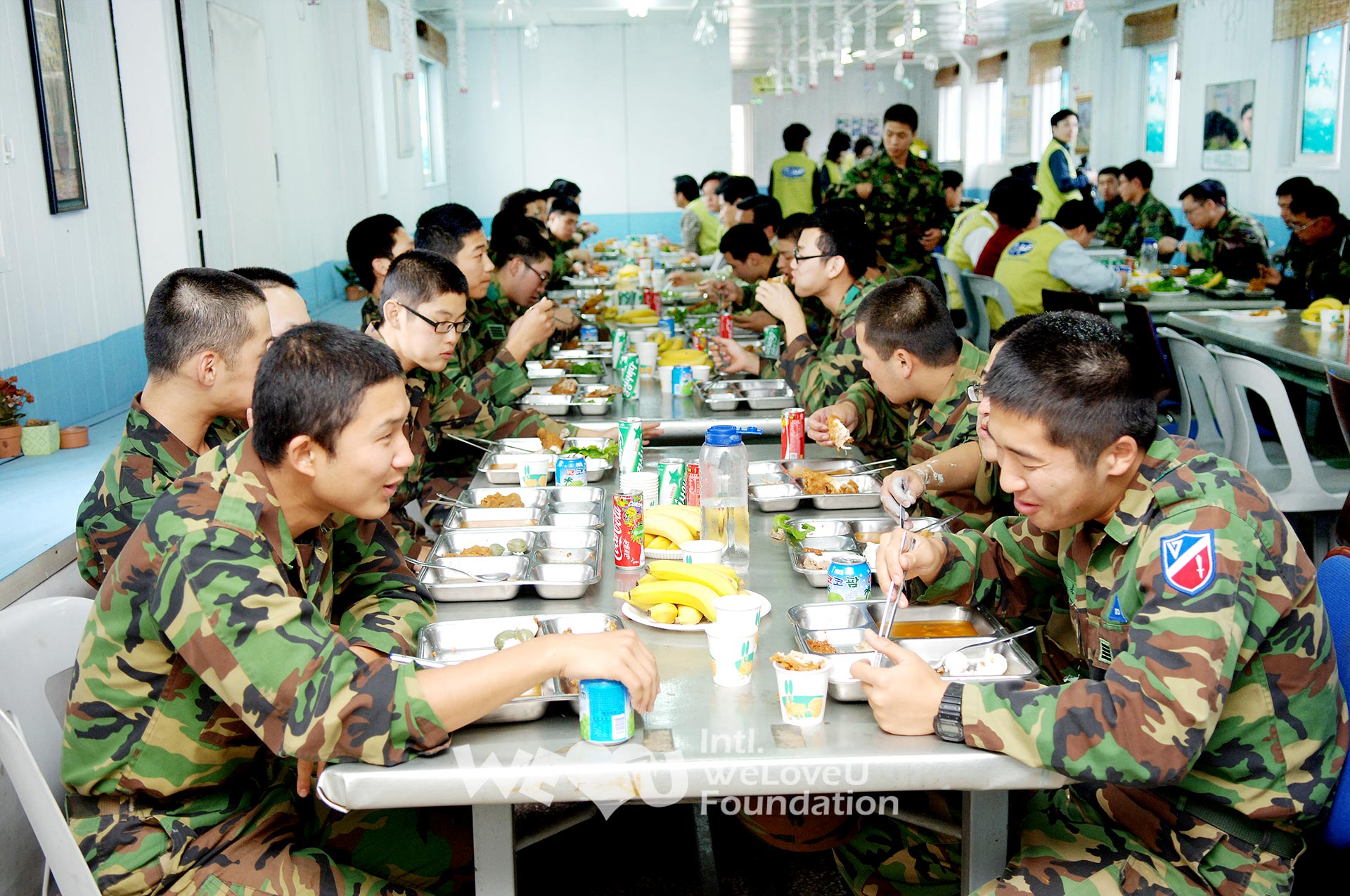 After the Foundation members served lunch for the soldiers, the male members talked about their military life at the tables. To the soldiers who do not let down their guard toward the invisible enemy and protect their country day and night, mosquitoes in summer and extreme cold in winter are their another great enemy. However, they say that the most formidable enemy is themselves; they have to endure solitude and tension all alone. To the soldiers who persevere with their mental and physical difficulties and do their best to carry out their mission as a shield of the nation, the members gave a warm round of applause and turned back.