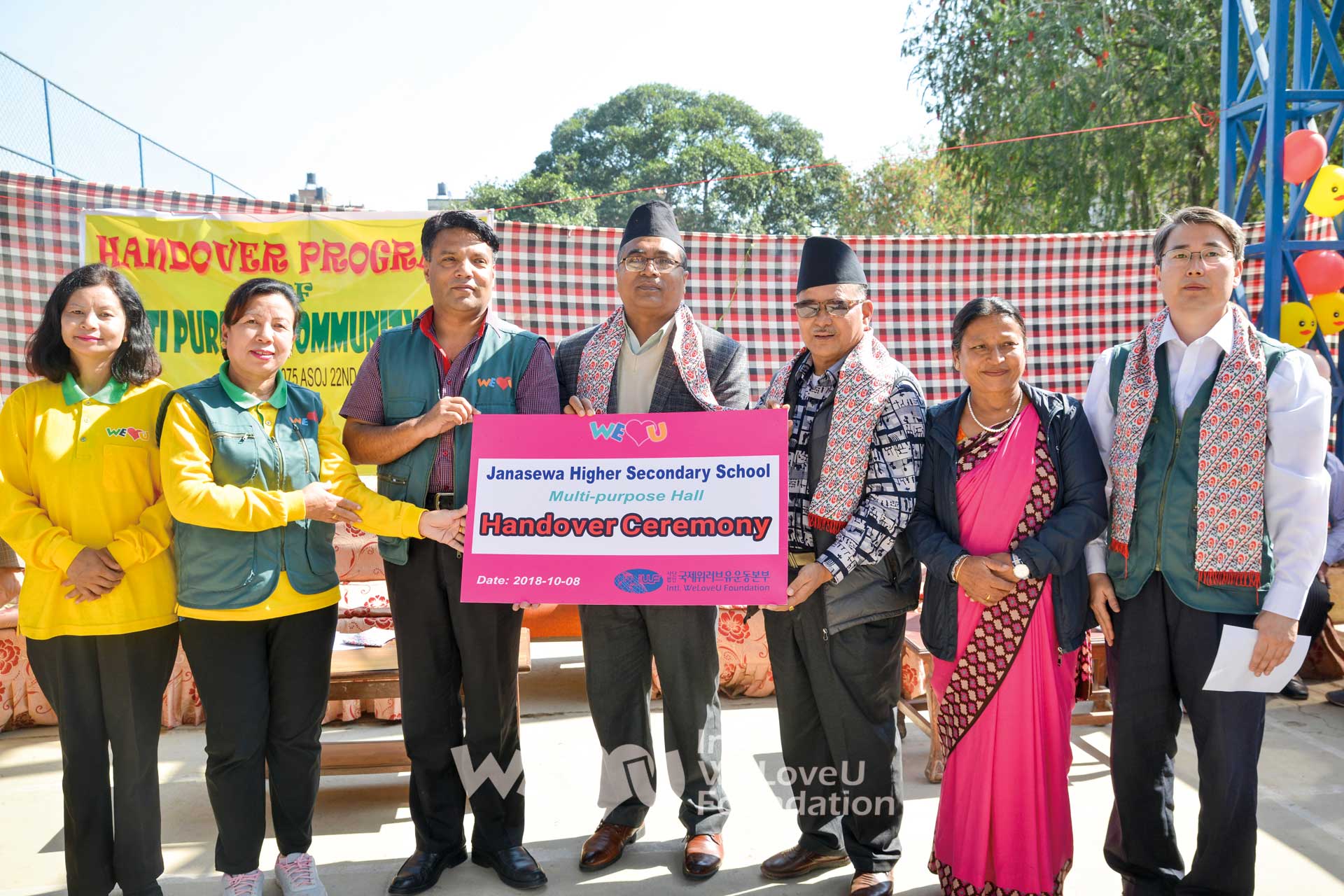 The multipurpose hall will be open to local residents as well as to the students of Janasewa School, and it will be used as a facility for daily exercise. It can also be used as an emergency shelter on the occasion of a disaster. An official from the WeLoveU said that they would continue to discuss with the municipality and provide educational supplies and books for schools that need help.