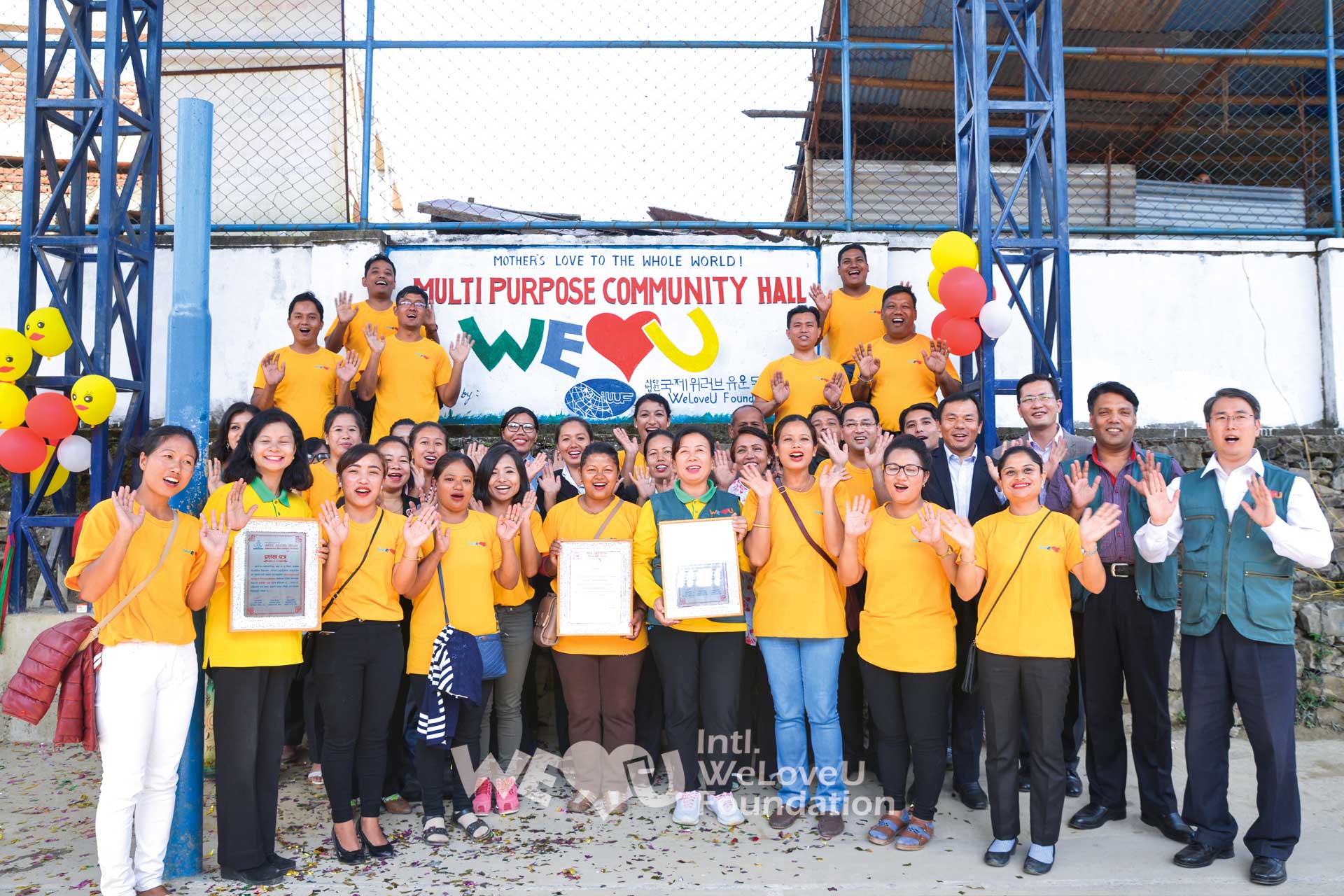 Principal Nanda Kumari Maharjan expressed her gratitude to the WeLoveU that helped build the hall with a mother’s love by saying, “A sports facility where students can exercise even when it rains was our long-cherished dream. The WeLoveU has carried out many activities around the world such as blood drives, walkathon, neighborly love, and so on. We would like to be part of it.” The building completion ceremony was reported in the local media, and it received much attention.