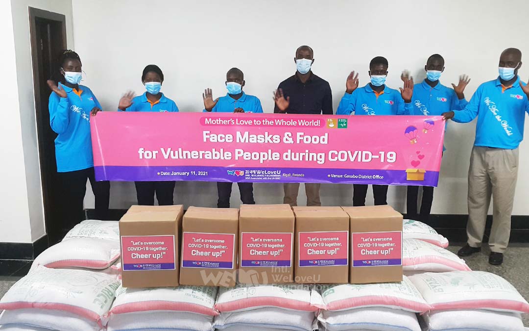 The Intl. WeLoveU Foundation (hereinafter referred to as the “WeLoveU”) stepped up to help the vulnerable as the pandemic dragged on and the hardships of the vulnerable get worse. The members decided to deliver face masks and food to the underprivileged through the Gasabo regional office in Kigali, the capital city of Rwanda. On January 11, not too long after the New Year’s Day, they delivered 3,000 face masks, 500 kg (1,100 lbs) of rice and soybeans each, and 100L of cooking oil to the Gasabo regional office.