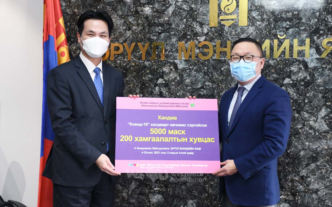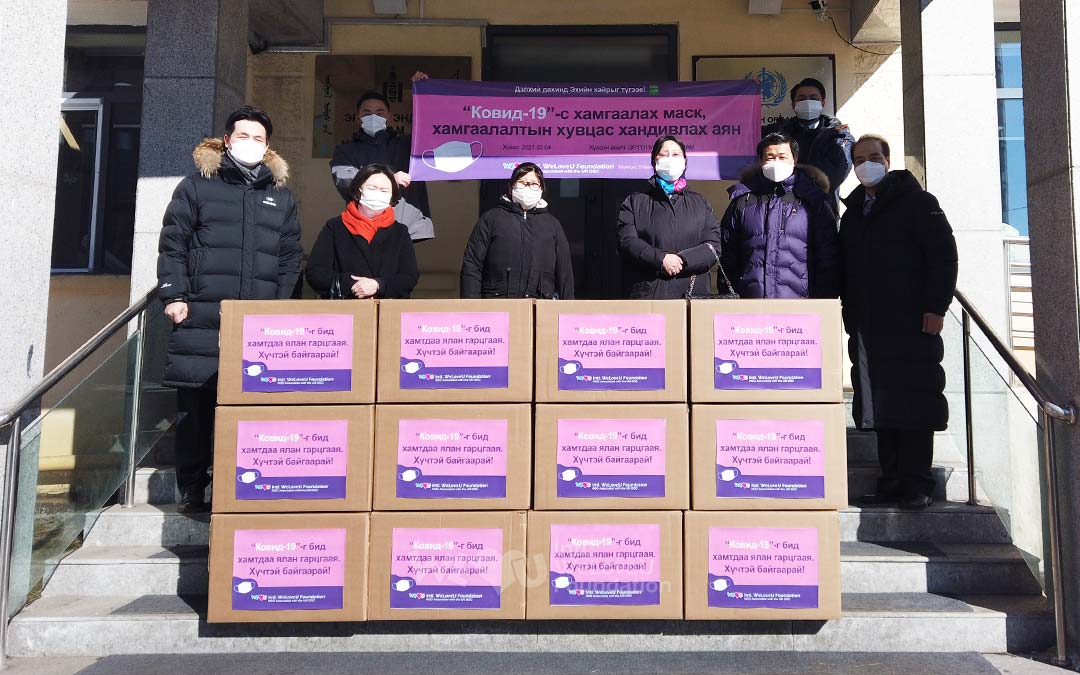Having learned of this situation, the Intl. WeLoveU Foundation set out to give a helping hand to them. The members decided to donate 5,000 face masks and 200 personal protective equipment [PPE] kits to the Ministry of Health of Mongolia, because the safety and health of health care workers eventually leads to the safety of citizens.