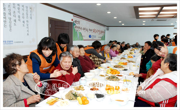 Mientras los ancianos disfrutaban la comida, la Presidenta Zahng Gil-jah y los miembros les sirvieron y compartieron con ellos conversaciones amistosas. Los ancianos disfrutaron el ambiente festivo y agradecieron a los miembros. Hwang Gyeong-nan (78 años), que vivía sola, expresó: “Parece que hoy es mi cumpleaños”. Y enjugó sus lágrimas, diciendo: “Agradezco mucho a estos jóvenes por consolarnos. No puedo contener las lágrimas”. Otro anciano, Kim Jong-hak (78 años), que por lo general pasa solo los feriados nacionales, manifestó su aprecio a los miembros: “Puedo ver cuánto se han esforzado para preparar este evento. Ni siquiera mis hijos me tratan así… Les debo mucho. Muchas gracias a todos”. Los miembros de la fundación respondieron: “No necesitan agradecernos. Solo considérennos como sus hijos”. También los consolaron con masajes.