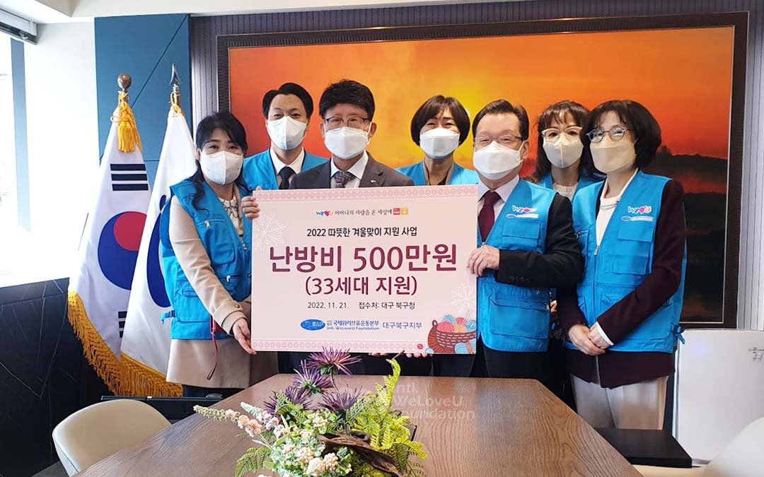 Hay un pellizco en el aire. Ha llegado la época en que se anhela el calor. La Fundación Internacional WeLoveU (en adelante WeLoveU) llevó a cabo el “Proyecto de Apoyo para un Invierno Cálido 2022” a fin de ayudar a los vecinos que estaban pasando un invierno frío. Del 16 de noviembre al 1 de diciembre, los miembros de WeLoveU proporcionaron suministros de calefacción, alimentos, gastos de calefacción y 10 000 mascarillas a 927 hogares vulnerables a través de 15 oficinas gubernamentales en Corea.