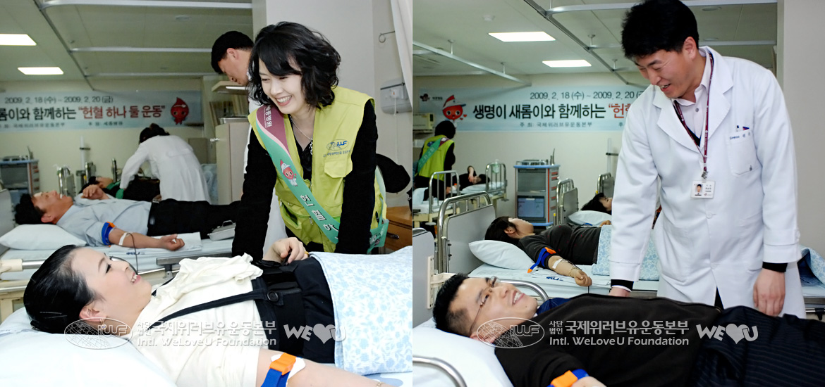 Los miembros de la Fundación Internacional WeLoveU, quienes habían donado sangre individualmente, fueron a donar en grupo. Esto fue debido a que las reservas de sangre disminuyeron rápidamente en invierno debido a las vacaciones escolares y de las tropas de reserva, que eran las fuentes principales de donación de sangre. Recientemente, el interés de la gente en donar sangre disminuyó y la calificación de los donantes se volvió estricta, lo cual hizo más difícil obtener sangre. El Hospital General Sejong, que tiene una relación de hermandad con la Fundación Internacional WeLoveU, había estado preocupado por la falta de suministro de sangre. Este hospital es uno de los mejores hospitales especializados en el corazón y los vasos sanguíneos, por lo que, con frecuencia, los pacientes necesitan transfusiones de sangre durante las operaciones.