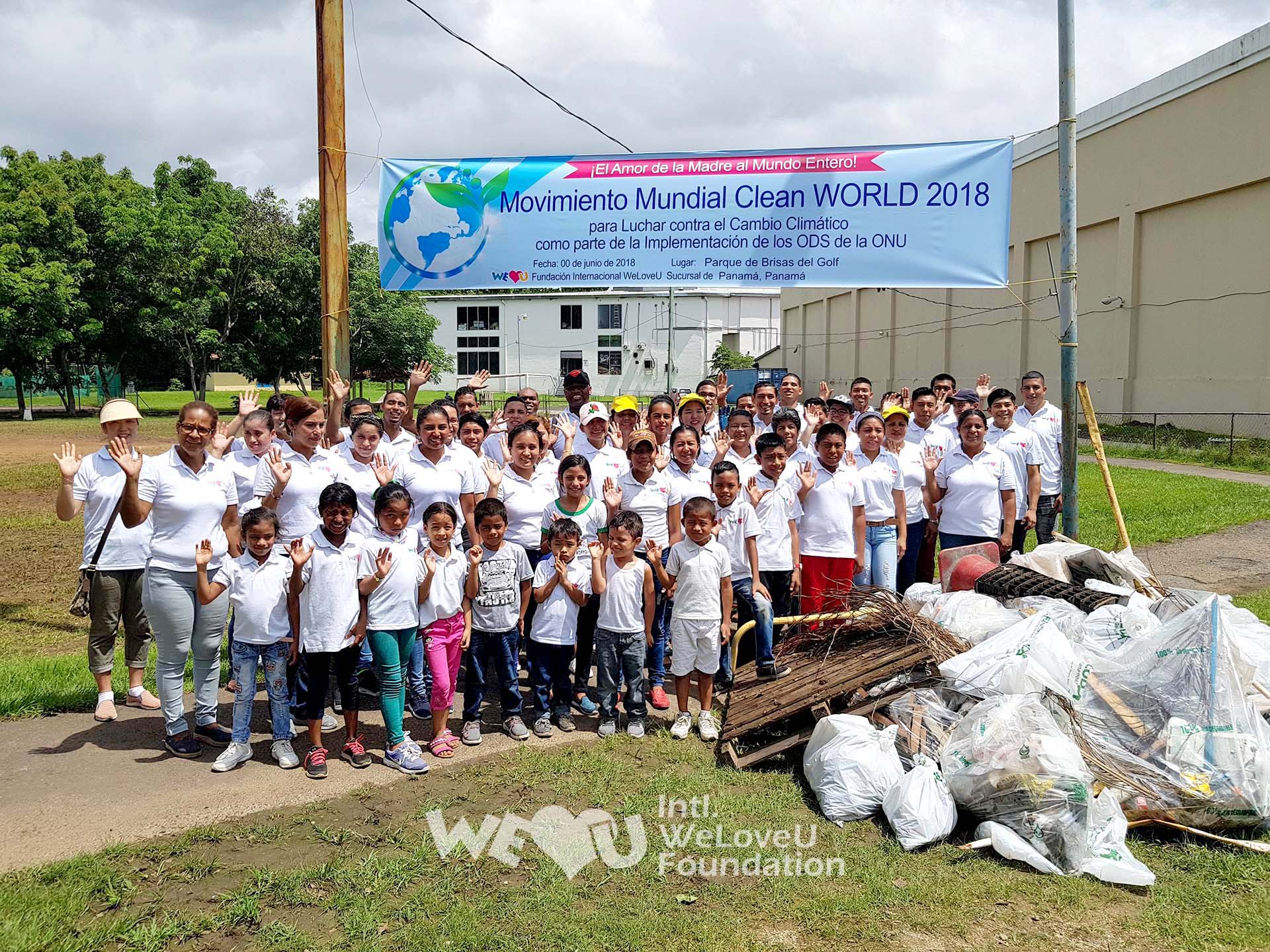 El 17 de junio se llevó a cabo una campaña de limpieza en el Parque Brisas del Golf, Panamá. Un grupo de voluntarios vestidos con camisetas blancas con la inscripción “WE♥U” estaban atareados entre los lugareños que visitaban el parque para pasar el feriado. Sosteniendo en una mano una bolsa de plástico y en la otra a sus niños, los miembros de la Fundación Internacional WeLoveU salieron a las calles en el feriado.