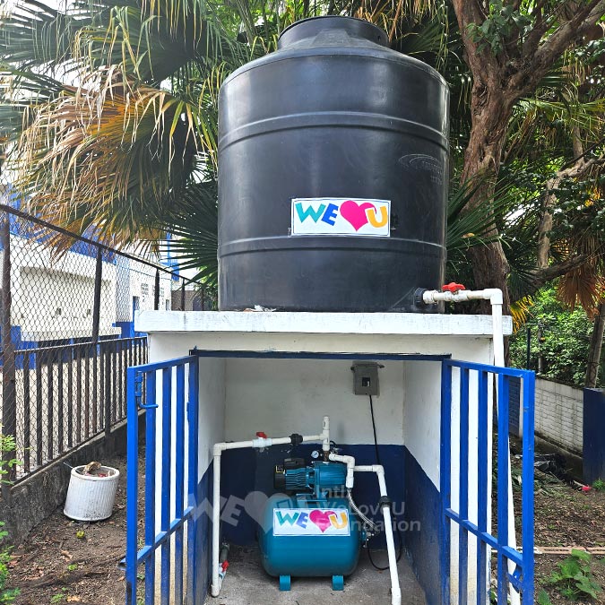 Durante la visita, los miembros de WeLoveU inspeccionaron detenidamente las instalaciones y hablaron con los responsables de la escuela para identificar las áreas necesitadas de ayuda complementaria. Descubrieron las dificultades de utilizar la bomba de agua, ya que había que accionarla manualmente cada vez. Además, el depósito subterráneo no se había limpiado periódicamente, lo que planteaba problemas de saneamiento.