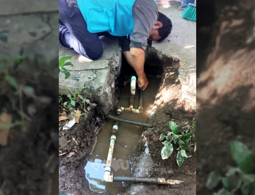 El 25 de noviembre, los miembros de WeLoveU regresaron a la escuela para brindar apoyo de seguimiento. Limpiaron a fondo el depósito subterráneo e instalaron una válvula de retención en la tubería subterránea conectada a la bomba de agua para regular automáticamente el flujo de agua y evitar el reflujo.