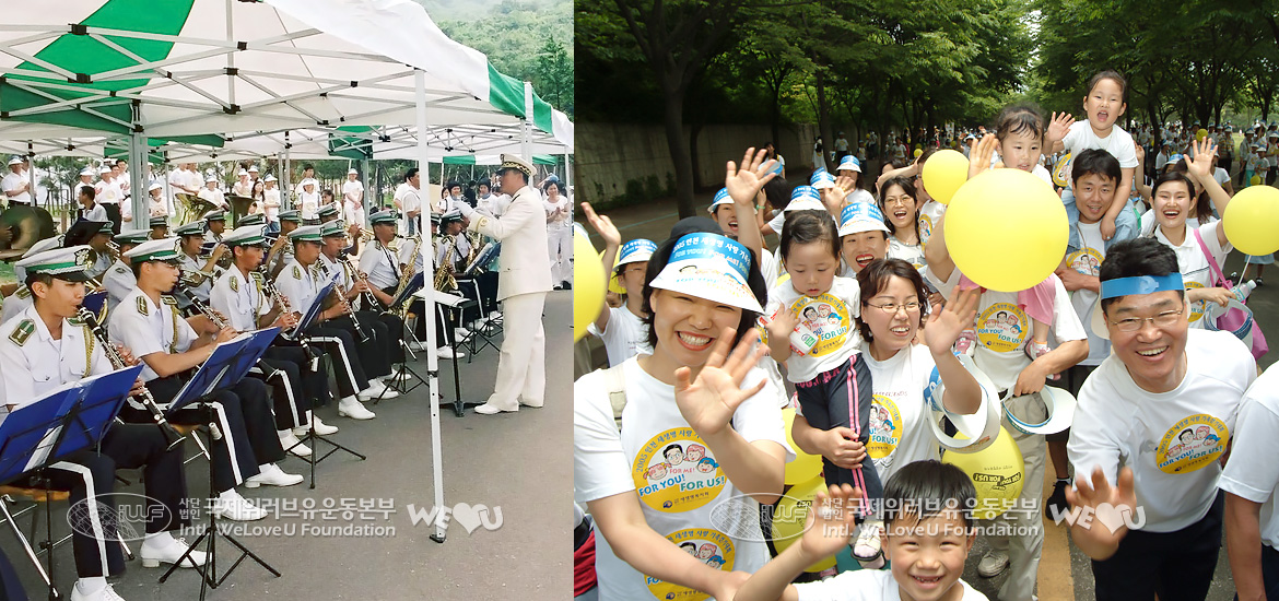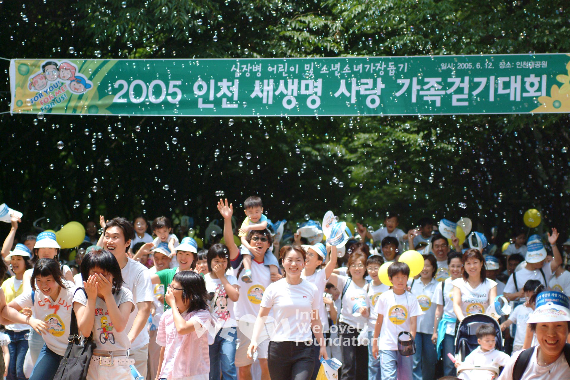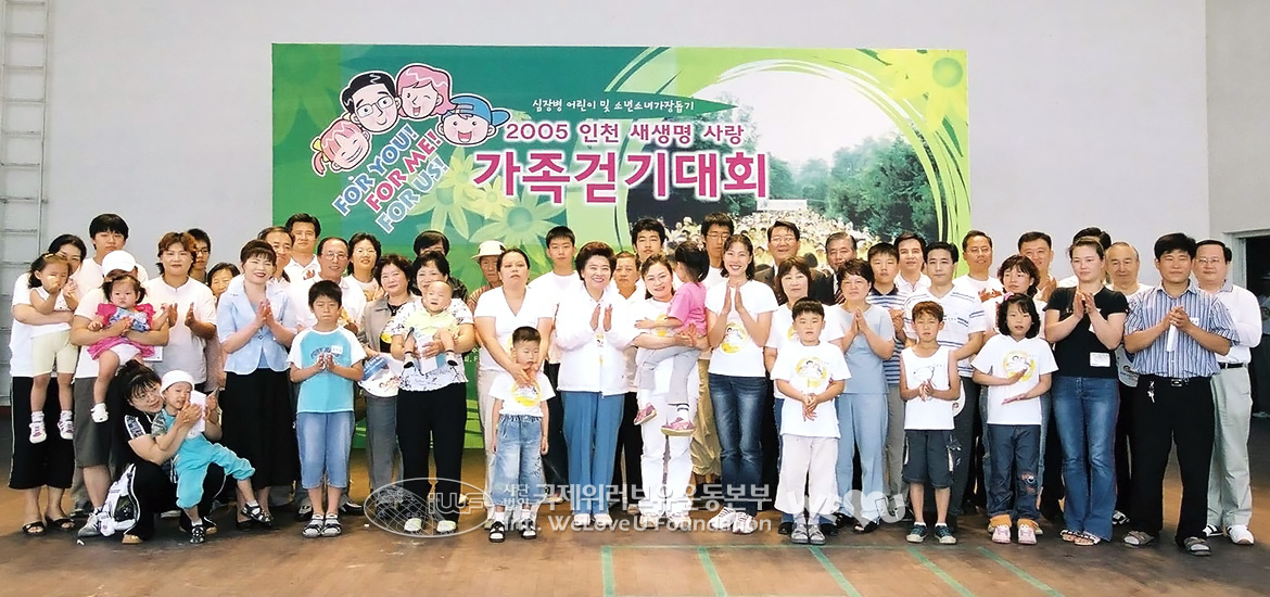 El comienzo del verano en la ciudad de Incheon era hermoso cuando las camisetas blancas de los miembros de la fundación llenaron el bosque verde. El domingo 12 de junio de 2005, cerca de 15 000 “corazones puros” vestidos con camisetas blancas se reunieron a la sombra de los árboles en el Gran Parque de Incheon ubicado en Jangsu-dong, Namdong-gu, Incheon-si. Se realizó la “Caminata Familiar Nueva Vida de Incheon” organizada por la Fundación de Bienestar Nueva Vida para ayudar a los niños que sufren de enfermedades cardíacas y a los hogares sin padres.