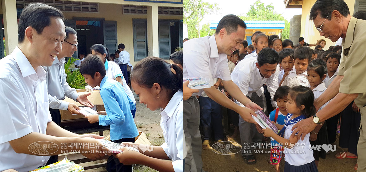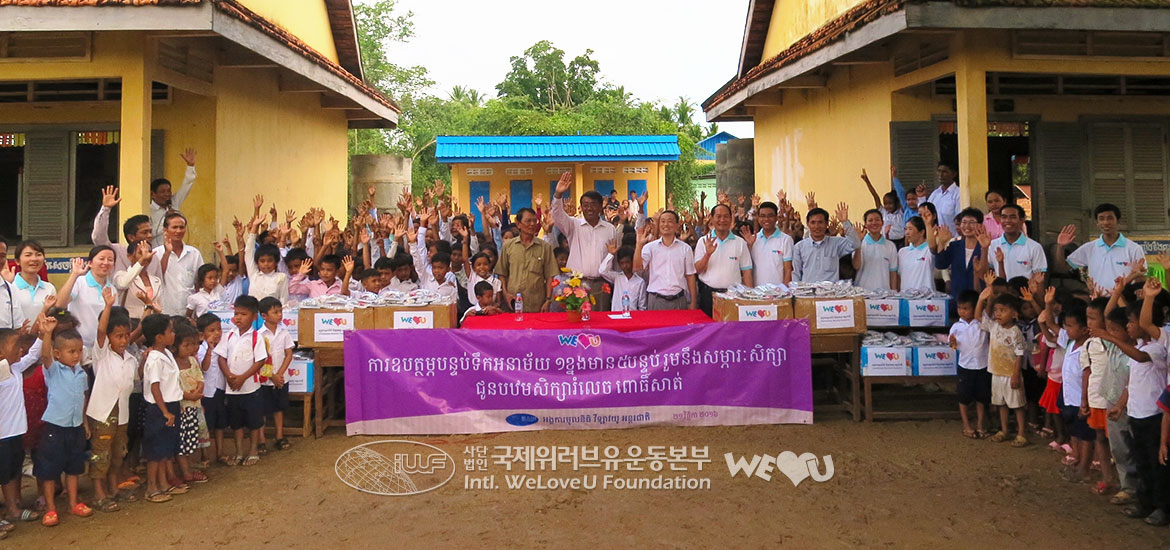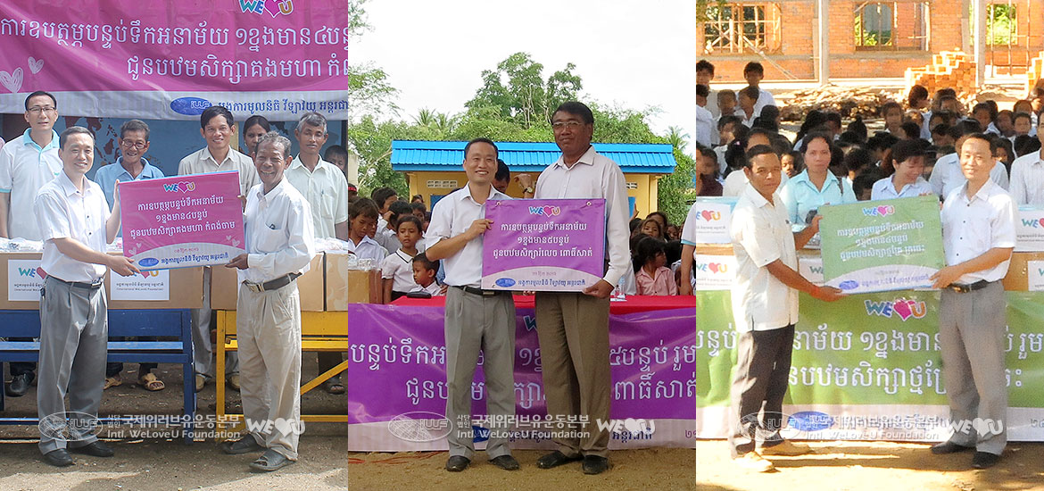 En Camboya hay escasez de agua potable debido al suelo rico en cal y a la severa contaminación del suelo. Además, la mayoría de las escuelas sufren problemas financieros. Un problema particular es que muchas escuelas carecen de baños; estas malas condiciones sanitarias hacen que los estudiantes se infecten de enfermedades. Por eso, la sucursal de Camboya de la Fundación Internacional WeLoveU decidió establecer instalaciones de suministro de agua o instalaciones sanitarias para la salud de los estudiantes y la higiene de las escuelas, y visitó el Ministerio de Educación, Juventud y Deportes de Camboya para discutir el plan de apoyo con el ministro. Hang Chuon Naron, Ministro de Educación, Juventud y Deportes, manifestó: “En nombre del Ministerio de Educación, me gustaría agradecer a la Fundación Internacional WeLoveU por apoyar a las escuelas con instalaciones. Espero que todos los miembros de la fundación estén saludables y felices”.