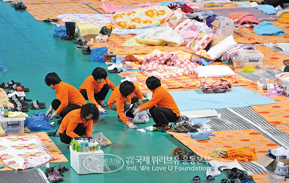 The Intl. WeLoveU Foundation’s free meal camp had provided over 13,000 meals for 19 days until May 9, but finished as the government requested evacuation with fewer victims’ families. Volunteers from other organizations, journalists, and public workers all appreciated the members’ work and felt sorry for parting. The victims’ families, who had visited the camp, brought their other families in the gymnasium to the camp and said goodbyes to the members. The Intl. WeLoveU Foundation became another family for those who lost their family. Hoping to meet again, the members asked them to gain strength.