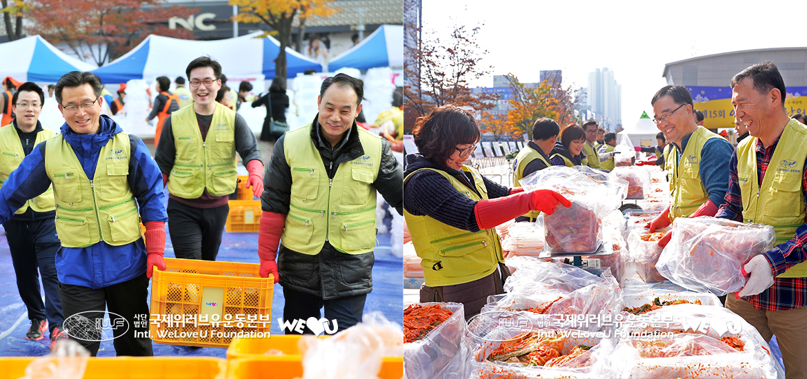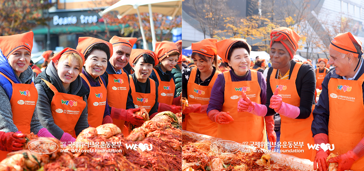 이 자리에는 장길자 회장을 비롯한 위러브유 회원 200여 명과 더불어 다문화가정 주부, 외국인 유학생 주부 20여 명이 참석해 한국의 김장문화를 직접 체험하며 이웃 사랑을 나눴다. 우즈베키스탄, 이라크 등 주한 외교관 가족과 제종길 안산시장 부인 임미정 여사, 시민단체 ‘참안산사람들’ 민병권 상임대표도, 이웃 사랑 나눔에 위러브유와 늘 함께해온 탤런트 김성환(친선대사), 최예진, 가수 이승훈, 윤태규 씨도 바쁜 일정을 미루고 달려와서 정성스러운 손길로 함께 김치를 담그며 참가자들을 격려했다.