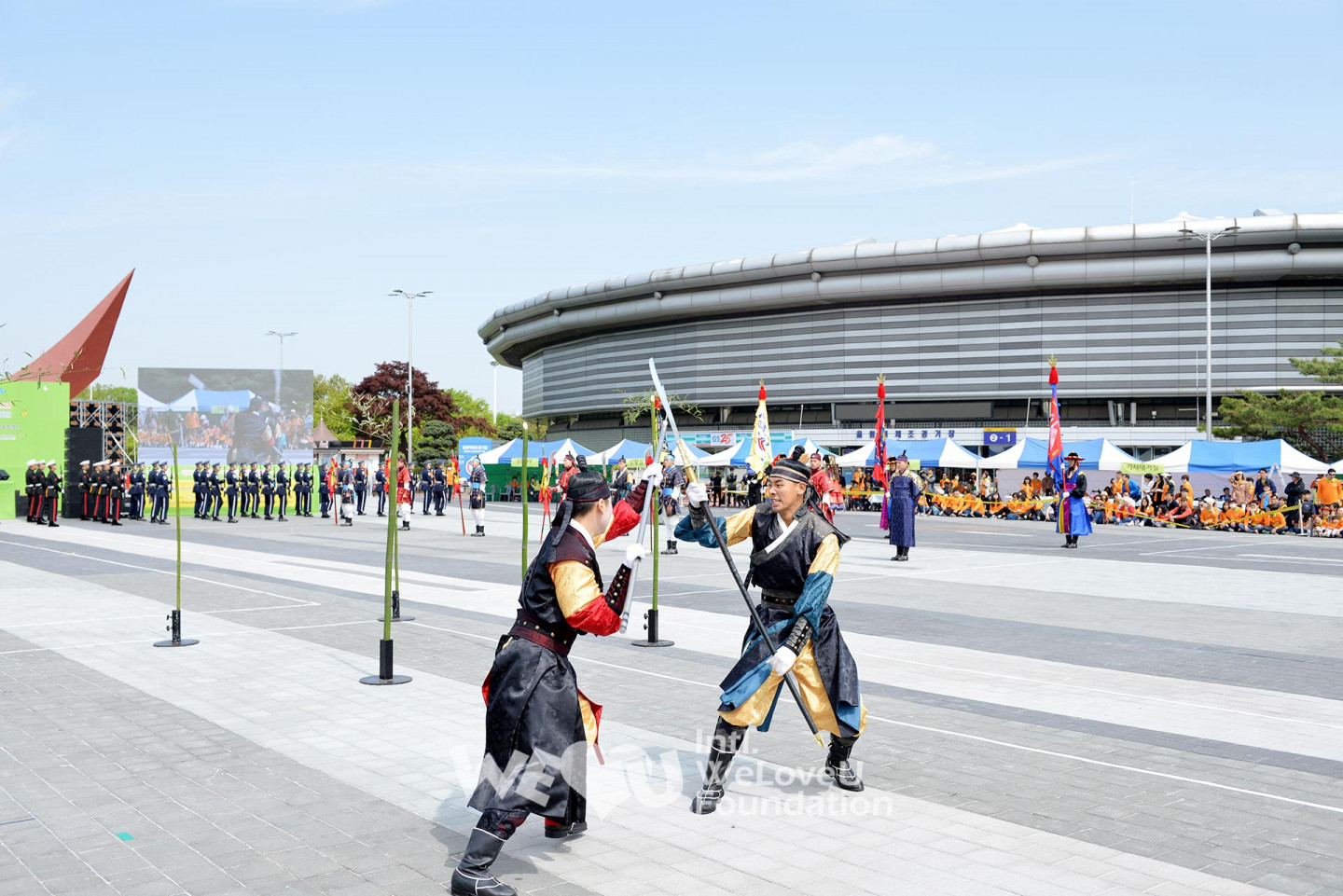 오전 10시경, 새생명어린이합창단의 사랑스러운 무대를 시작으로 식전 행사가 열리고 곧이어 1부 기념식이 시작됐다. 오전 11시경, 내빈들의 입장과 소개 이후 이어진 개회사에서 위러브유 장길자 회장은 “국내 복지소외가정과 재난 앞에 삶이 무너진 지진피해민, 기후난민들에게 어머니의 사랑으로 삶의 희망과 용기를 주고자 한다”며 이번 행사의 취지를 설명했다. 행사 참가자들에게 감사의 인사를 전한 장길자 회장은 “짧은 인생과 고달픈 삶을 혼자 견뎌야 한다는 고독감은 불행”이라며 “소외된 삶을 사는 지구촌 이웃들에게 힘내라고 응원하는 동행자가 되어 위로와 희망이 되어주자”고 힘주어 말하고, “동행자들이 이렇게 응원하고 있으니 힘내시라”며 지구촌 이웃들에게 위로와 격려의 메시지를 덧붙였다.