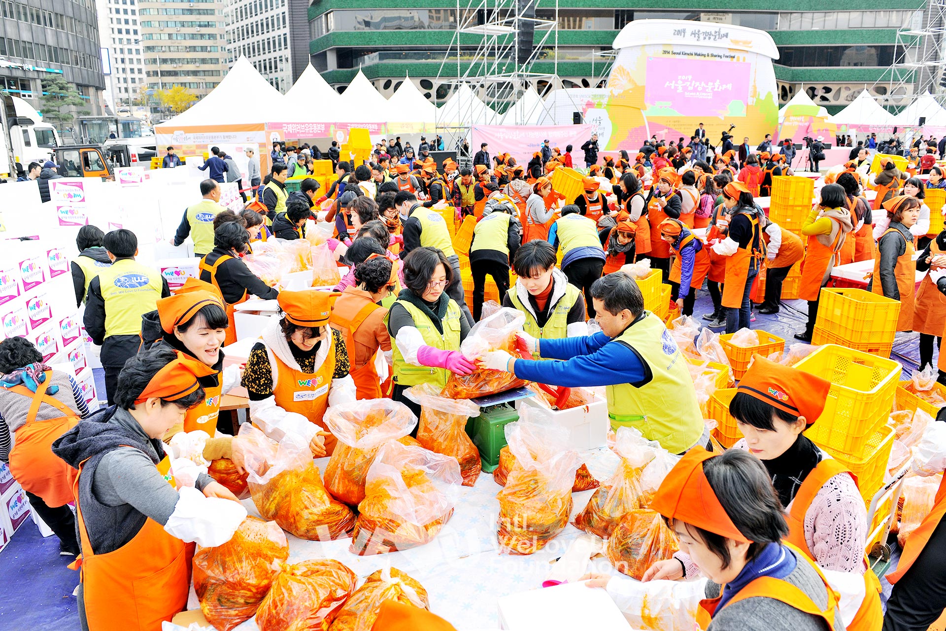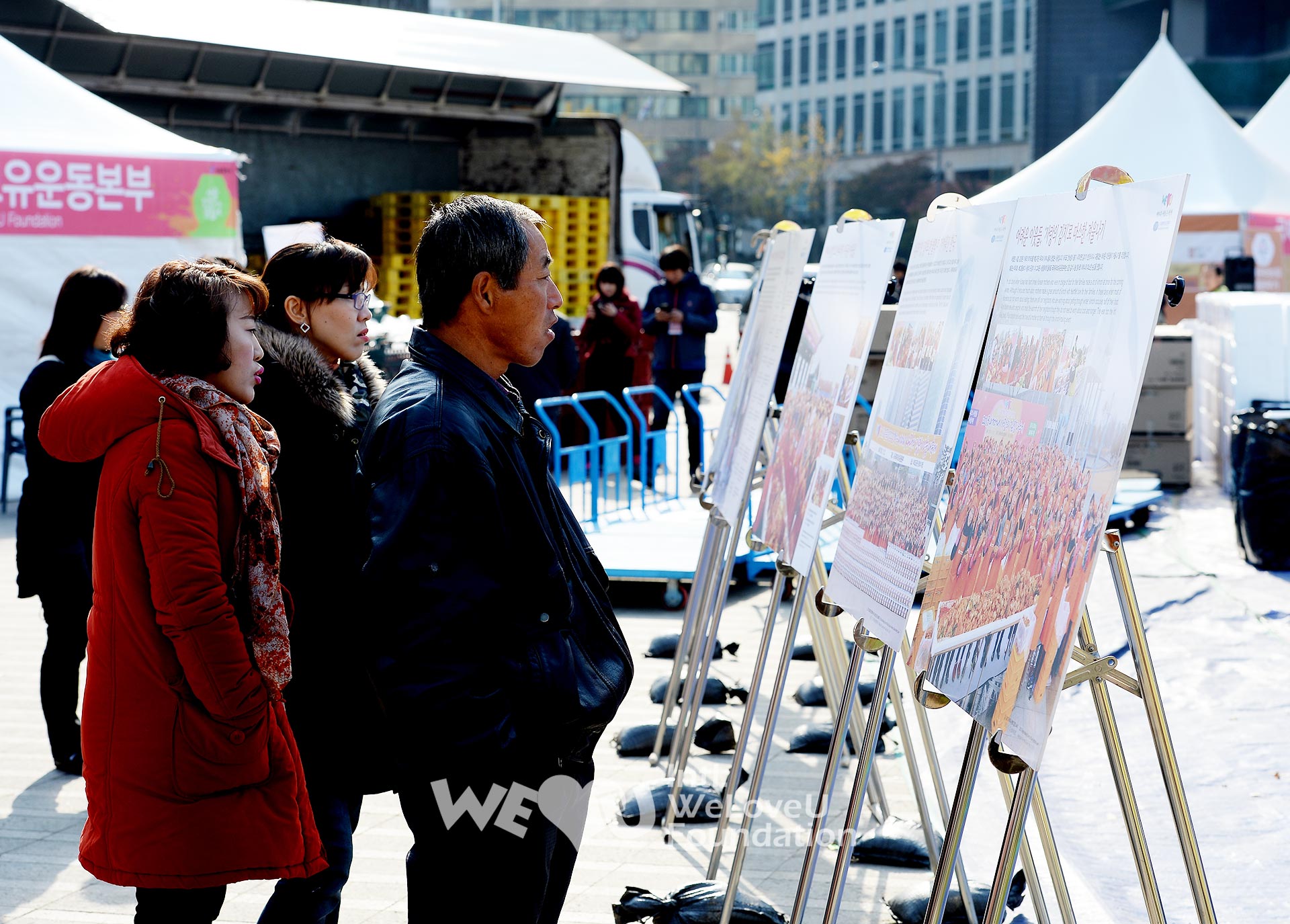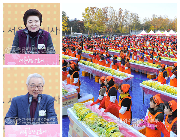 11월 16일 일요일. 사흘간 진행되던 2014년 서울김장문화제의 마지막 날 오후 1시경, 국제위러브유운동본부 장길자 회장의 격려사가 서울광장에 울려 퍼졌다. 해마다 겨울을 앞두고 어머니의 사랑과 정성이 가득한 김치를 담가 이웃에 전해온 위러브유의 ‘어머니 사랑의 김장나누기’가 올해는 서울김장문화제 ‘나눔’ 프로그램에 동참, 서울광장에서 열린 것이다.