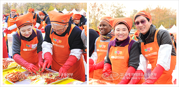 김장은 과거 서민들의 겨울 양식으로, 김장만 준비하면 아무리 혹독한 겨울도 이겨낼 수 있었다. 아직도 겨울이면 김장 걱정을 하는 이웃들을 위해 위러브유의 ‘어머니 사랑의 김장나누기’는 2007년부터 공식화된 이래 해마다 계속되어 왔다. 시일이 지날수록 발효되는 김치처럼, 위러브유 회원들의 사랑과 봉사의 마음도 그만큼 숙성되고 발효되어 더욱 진한 향기로 세계에 전파되고 있다.