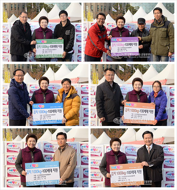 이날 다양한 단체 회원 약 2천 명이 김장으로 이웃사랑을 실천하기 위해 서울광장을 가득 메운 가운데 위러브유 회원 350여 명이 무대 앞쪽 33개 작업대에서 함께 김치를 버무렸다. 위러브유 장길자 회장과 이순재 후원회장, 이배근 상임고문(한국아동학대예방협회장), 황용규 서울시사회복지협의회장, 이순자 서울시의회 보건복지위원장 등 내빈들과, 위러브유의 초대로 참석한 가수 윤태규 씨, 육상스타 임춘애 씨, 탤런트 최예진 씨도 직접 김장에 동참했다.