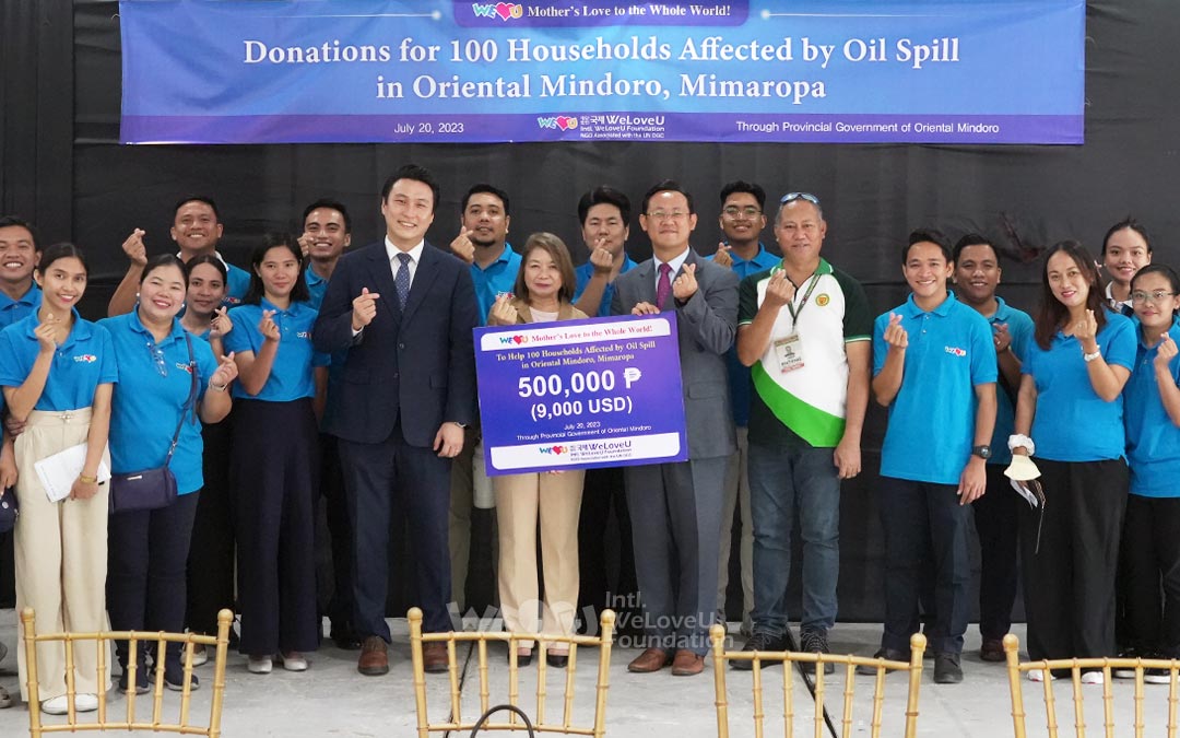 이날 위러브유는 오리엔탈민도로주 기름유출사고 이재민들에게 50만 페소(9천 달러) 지원을 약속하며 기증판을 전달했습니다.