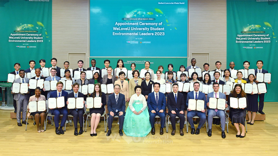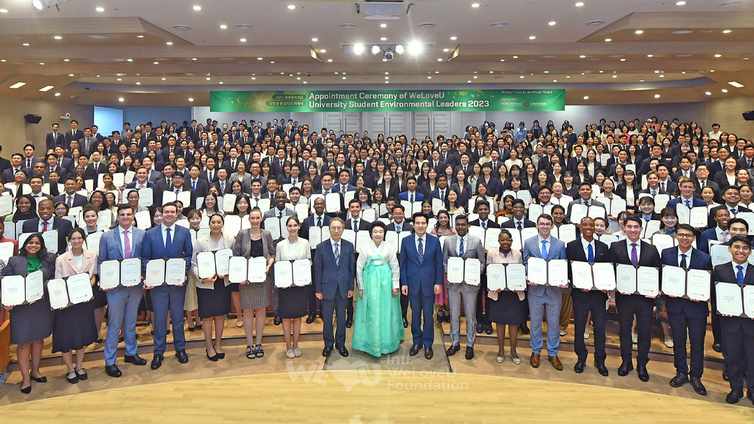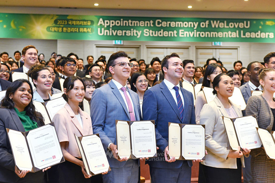 이날 35개국 세계 각국 동아리에서 환경활동과 봉사에 힘쓰는 대학생 167명이 ‘국제위러브유 대학생 환경리더’로 위촉됐다.