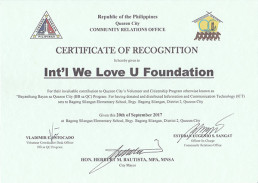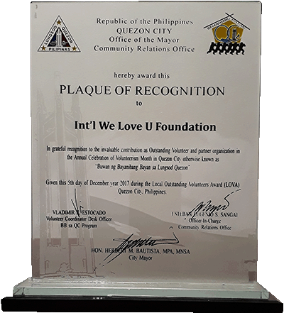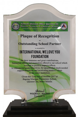 필리핀 케손시티 교육청 바공실랑안 초등학교 표창패