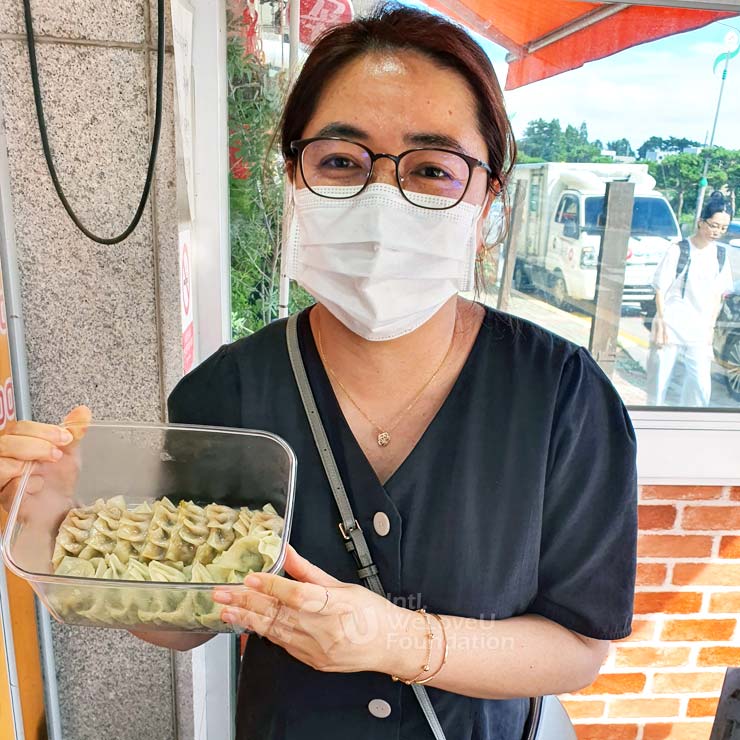 자주 가는 만두 가게에서 맛있는 찐만두를 샀습니다. 그릇을 내밀자 사장님이 좋아하시며 만두를 정성스레 용기에 담아주셨습니다.