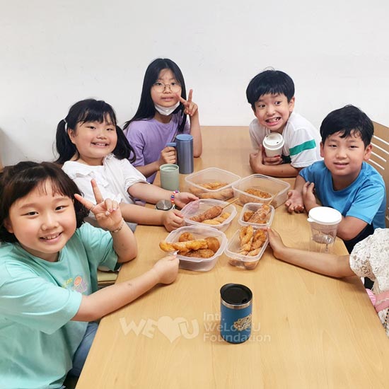 스터디 모임에서 간식으로 핫도그를 먹었습니다. 아이들과 함께 커다란 김치통에 담아온 핫도그입니다. 한 아이는 부모님과 함께 아이스크림 가게에서도 통큰용기 챌린지에 참여했다고 하네요. 8월 챌린지도 아이들과 함께하겠습니다.