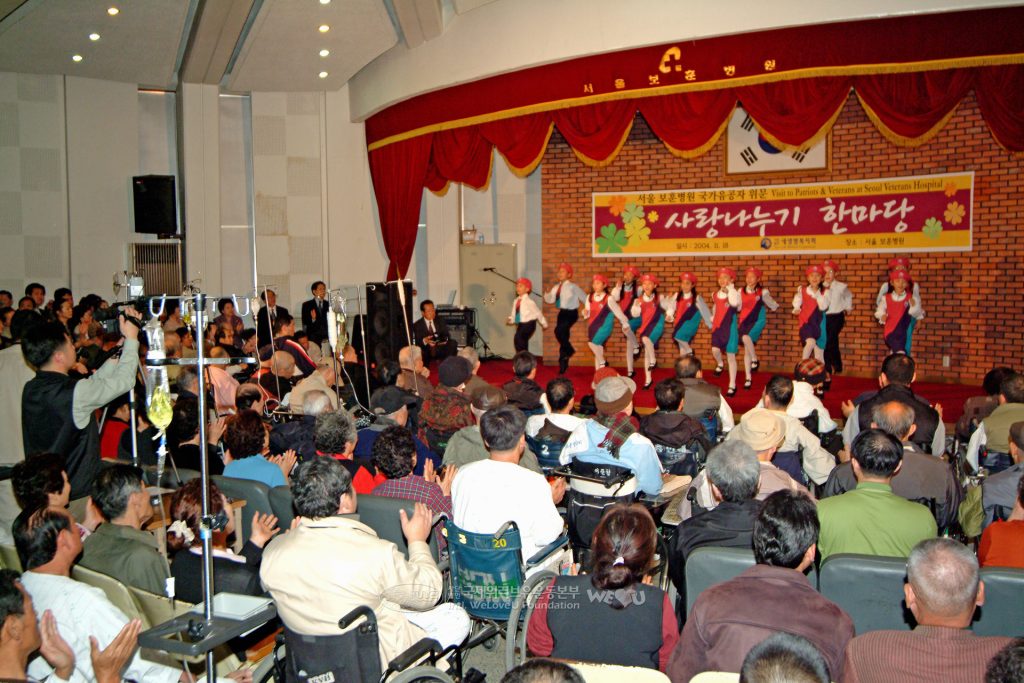 며칠간 계속되었던 이른 추위가 잠시 누그러지고 포근했던 11월 18일. 오후 2시경 서울보훈병원 대강당에서는 잠시 후 시작될 ‘사랑나누기 한마당’ 공연을 앞두고 최종 리허설을 마무리하고 있었습니다. 새생명복지회에서 주최한 이 공연은 서울보훈병원에 입원해 계신 애국지사와 상이군경 등 국가유공자와 그 가족들을 위한 것으로, 지난 6월에 이곳을 방문하신 장길자 회장님이 환자들을 위문하면서, 이분들께 뭔가 더 도움이 될 것이 없을까를 생각하고 계획하신 것입니다.