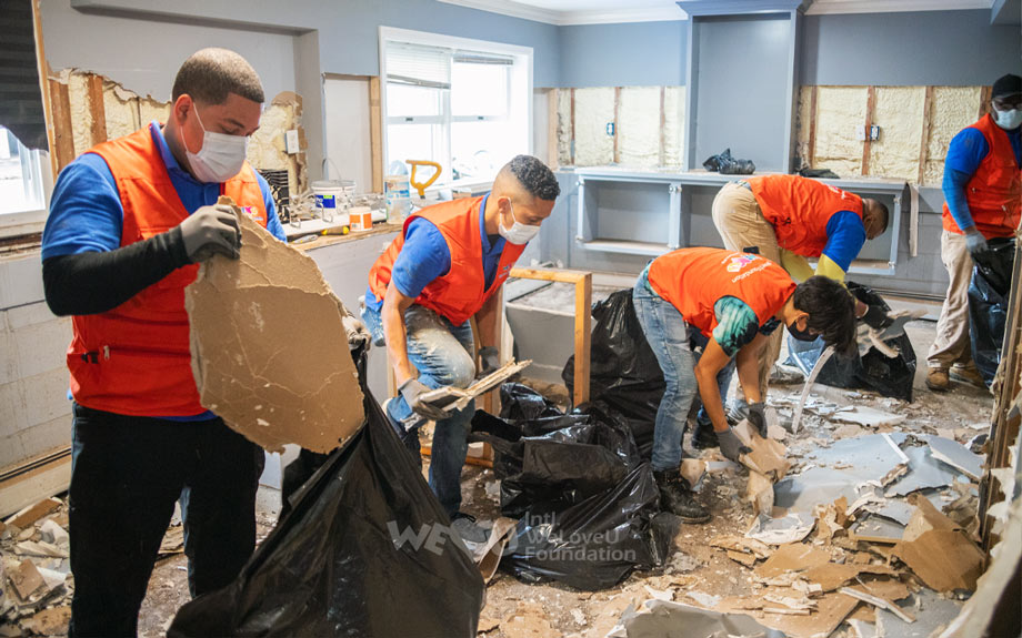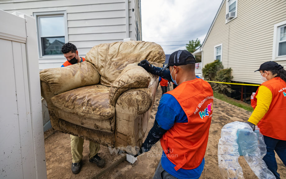 허리케인이 휩쓸고 간 뉴저지 리틀폴스 주택들의 모습은 그야말로 처참했다. 폭우에 쓸린 흙과 쓰레기가 집 안으로 유입되면서 가구와 벽이 오물을 뒤집어썼고, 가재도구도 모두 망가졌다. 그나마 씻거나 닦아서 사용할 수 있는 것들도 손이 없어 방치된 채 집 안을 나뒹굴었다. 이렇다 할 대책 없이 이재민의 한숨만 늘어가던 그때(9. 5.) 140여 명의 국제위러브유 미국 동부 지부 회원들이 청소 도구를 손에 쥐고 리틀폴스를 찾아왔다. 사실 리틀폴스 주민들은 지난 2018년에도 허리케인으로 비슷한 피해를 입었다. 당시 위러브유가 나서서 주택 복구에 힘을 보탠 바 있는데, 이를 고맙게 생각하며 기억하고 있던 주민들이 이번에는 먼저 위러브유에 구호 활동을 요청한 것이다.